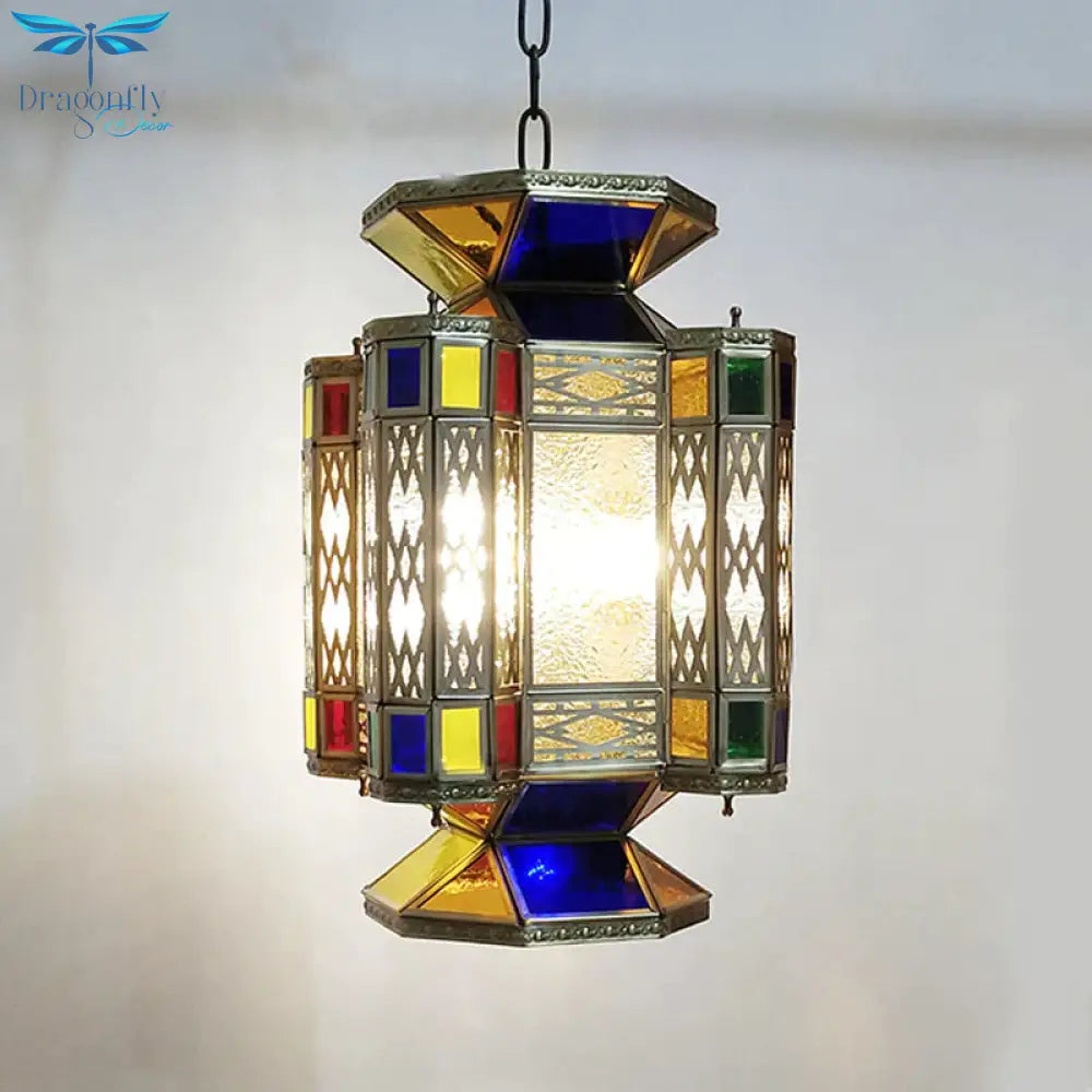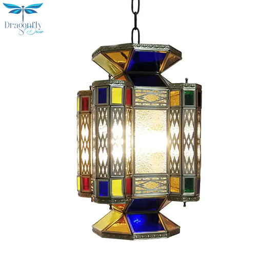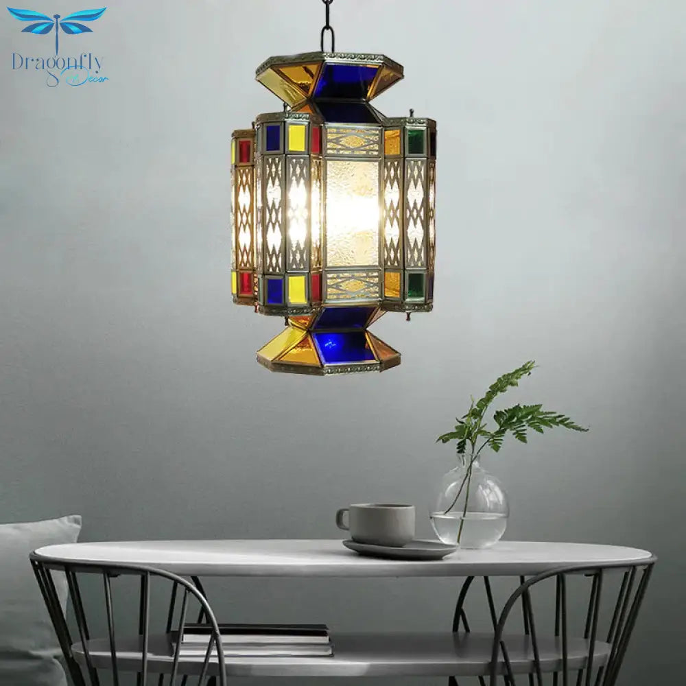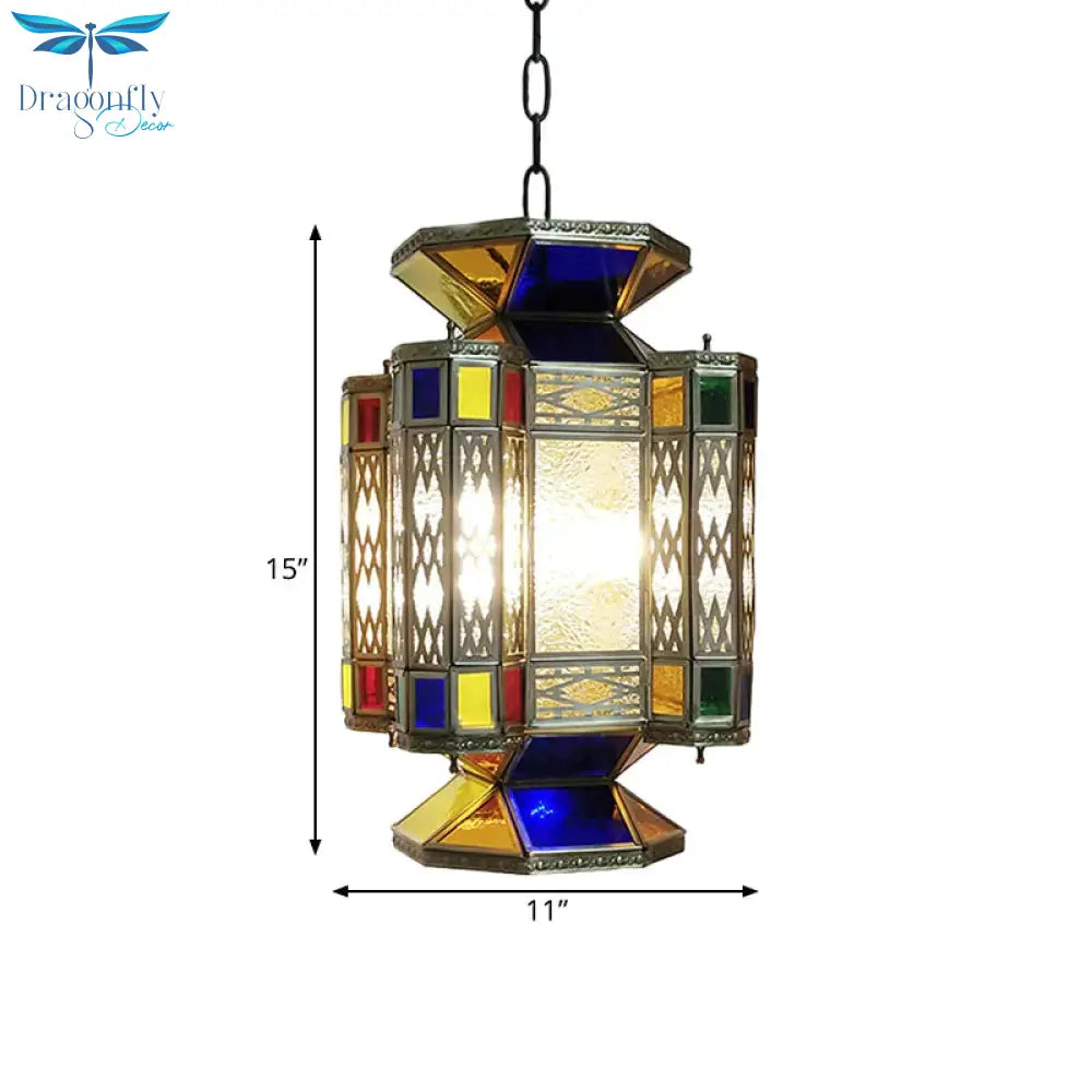 Textured Glass Lantern Ceiling Light Decorative 3 Bulbs Restaurant Cha