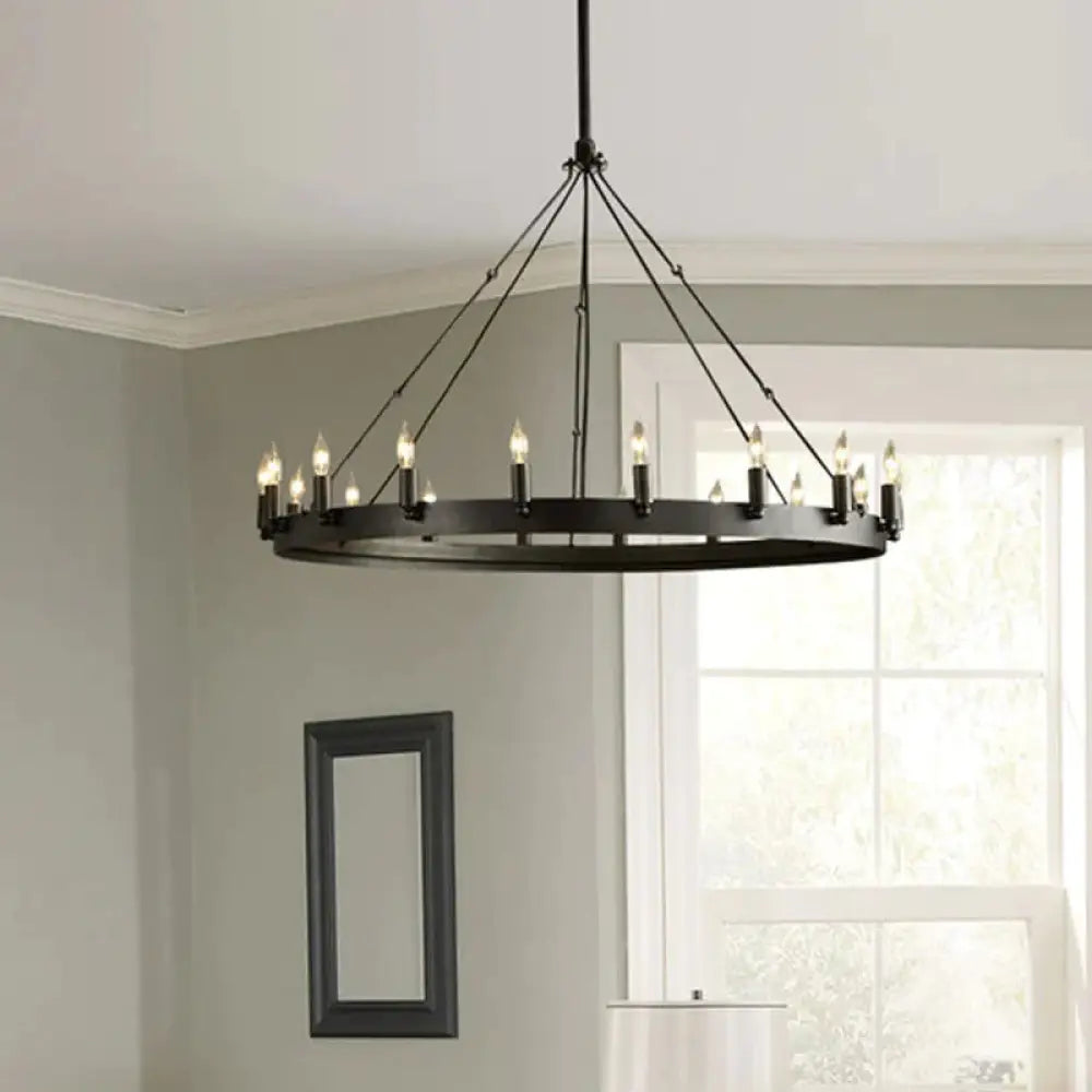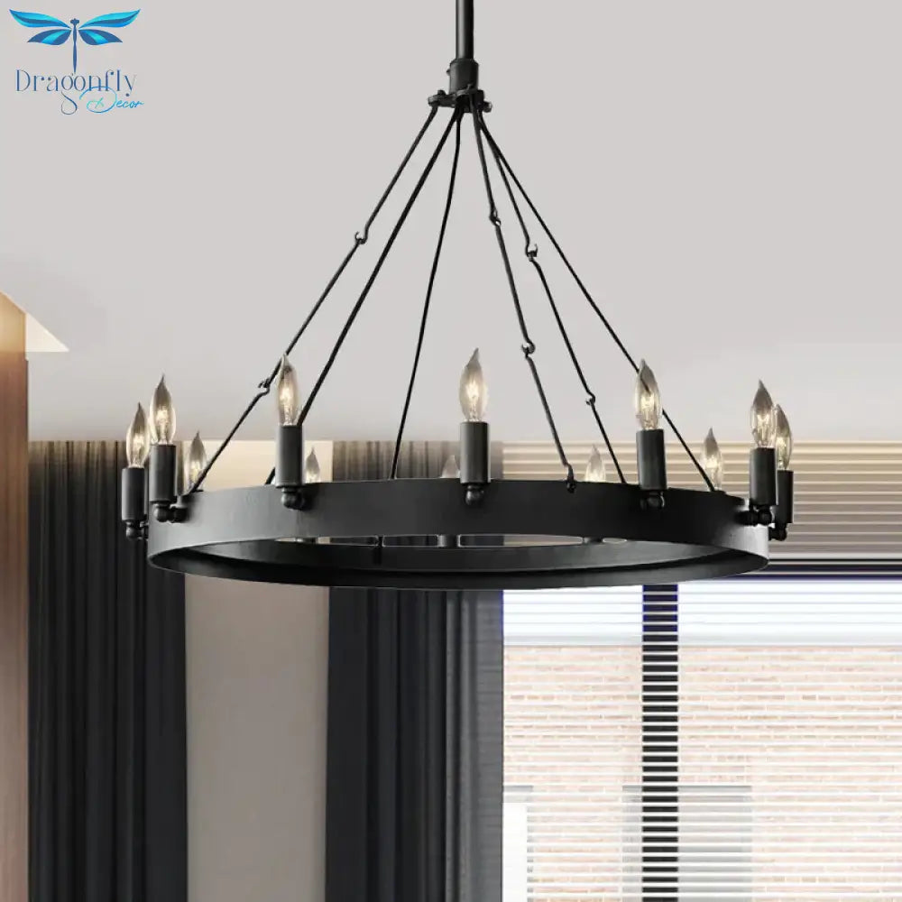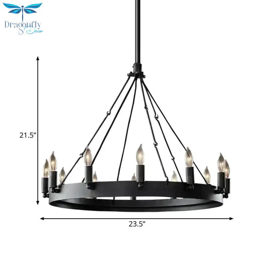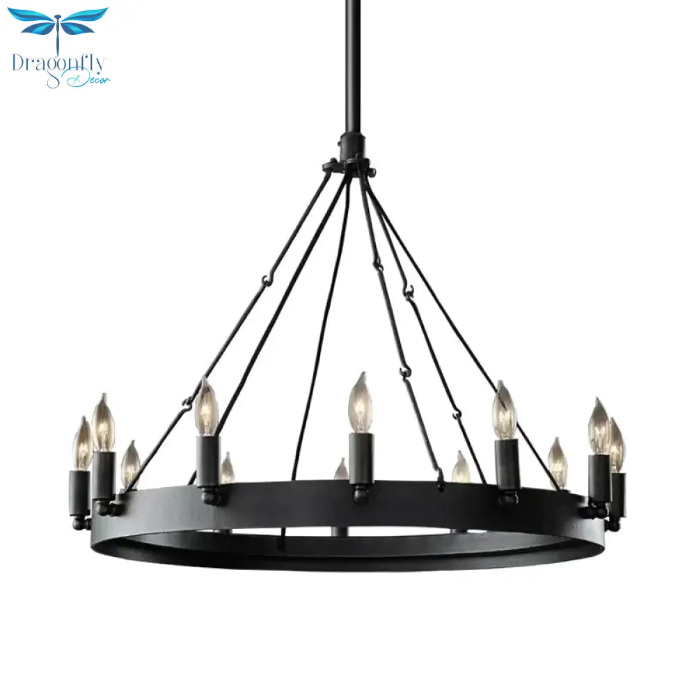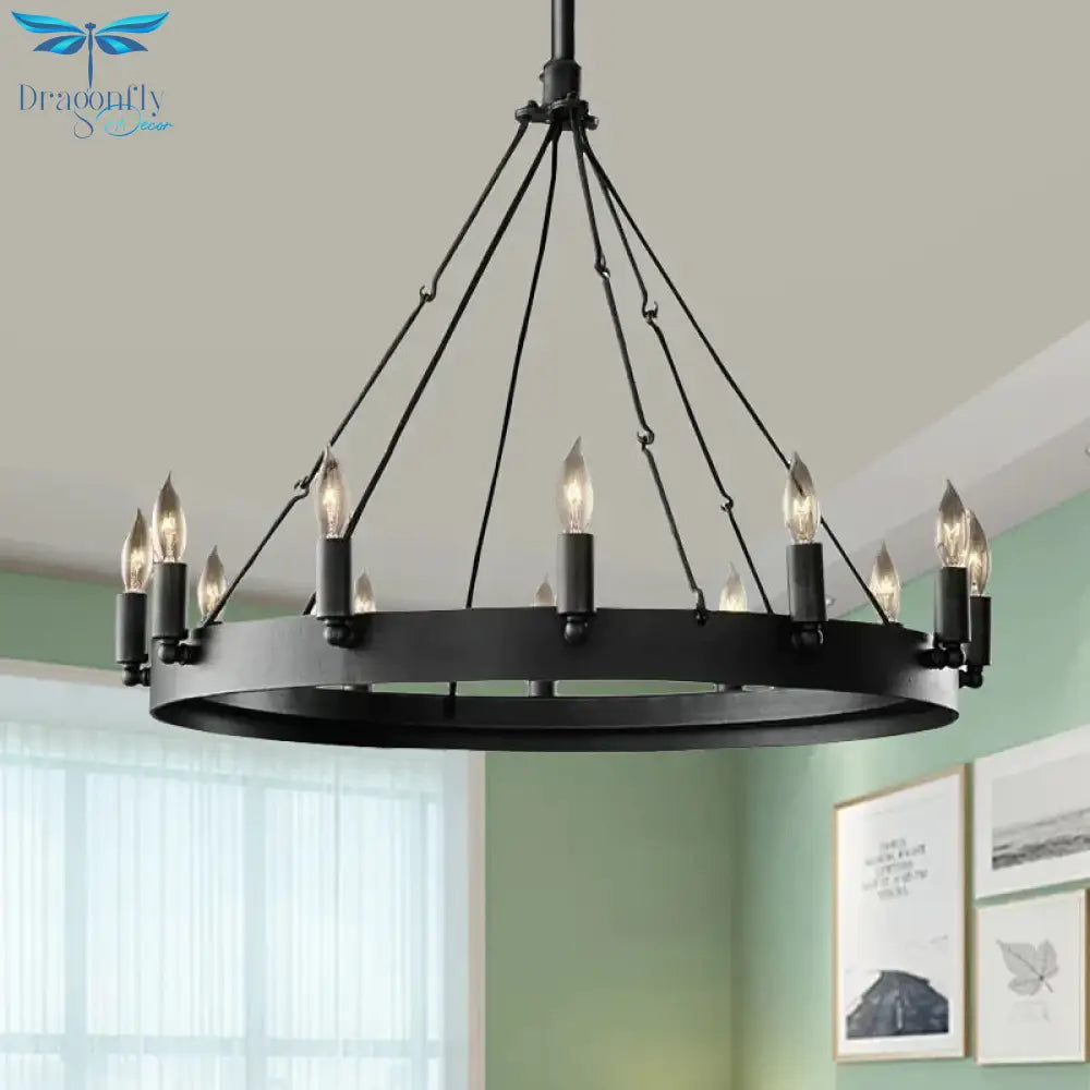 Traditional Black Metal Pendant Light with Candle Design 12/18-Light