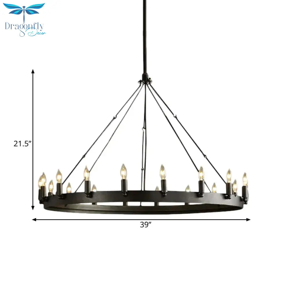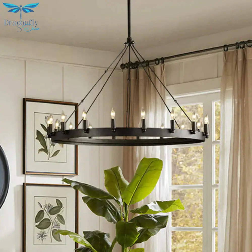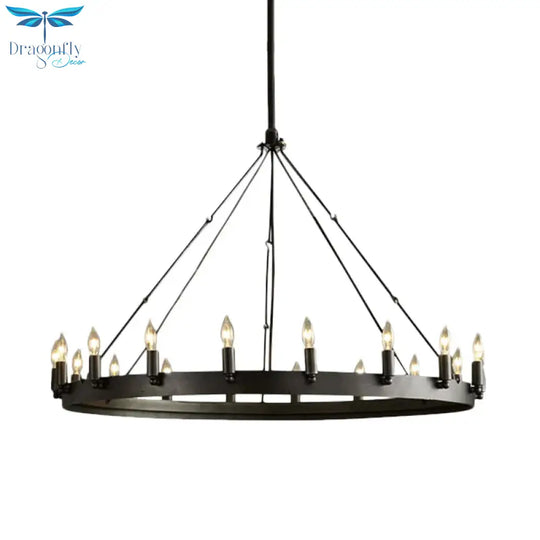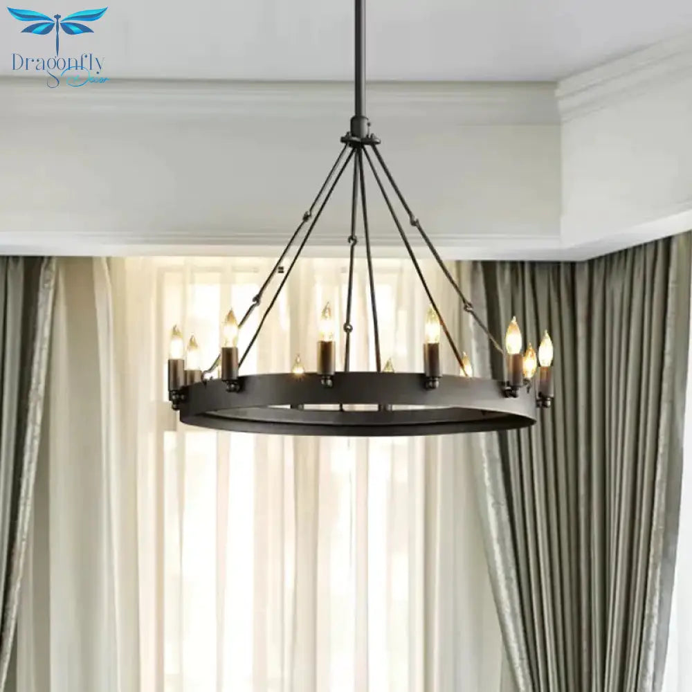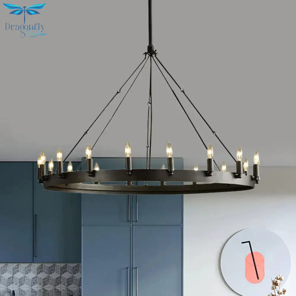 Traditional Black Metal Pendant Light with Candle Design 12/18-Light