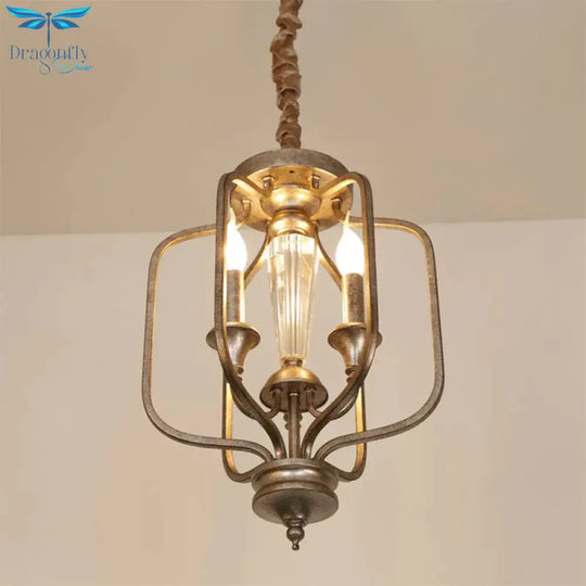 Traditional Caged Hanging Lamp 3 Bulbs Metal Chandelier Light Fixture