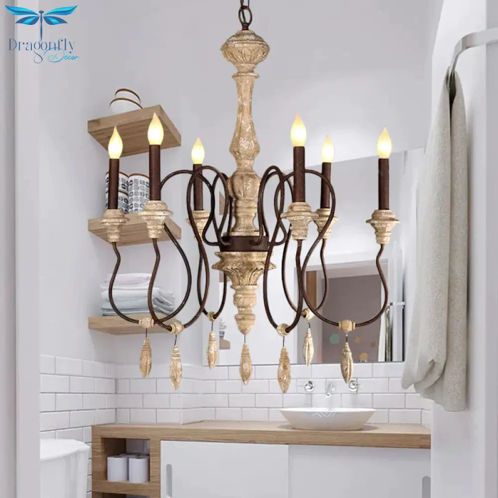 Traditional Candelabra Hanging Pendant 6 Lights Wooden Ceiling Chandel