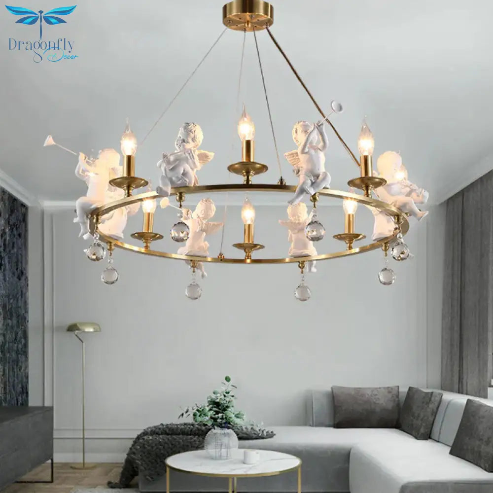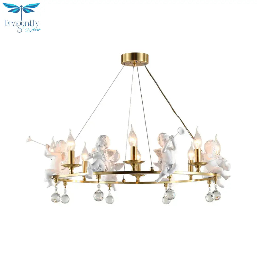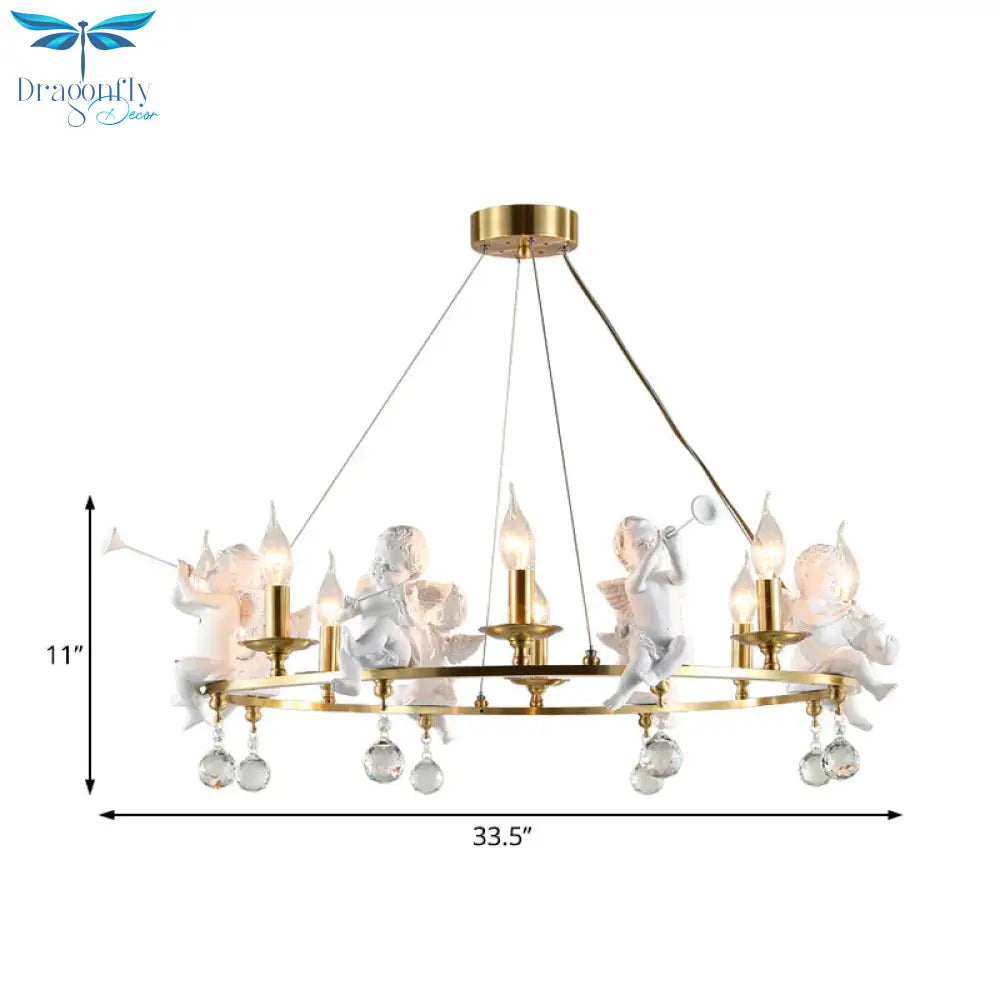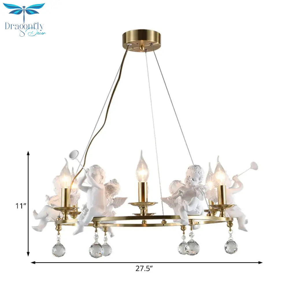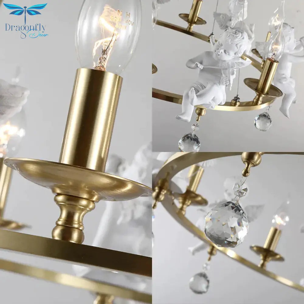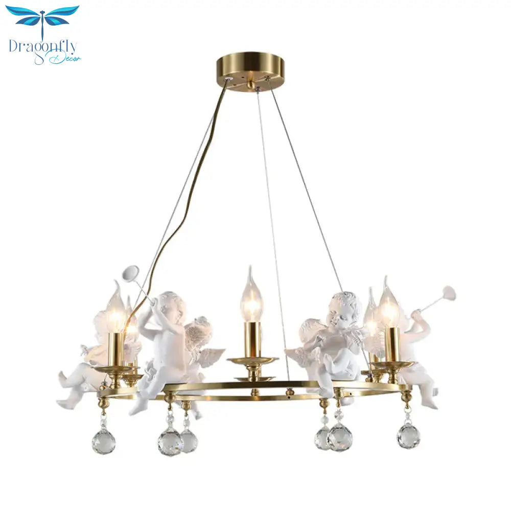 Traditional Candle Hanging Chandelier Metal 3/6/8 Bulbs Suspension Light in Brass with Angel