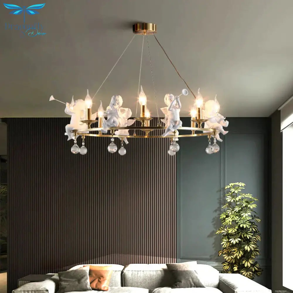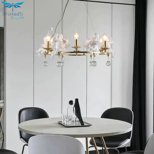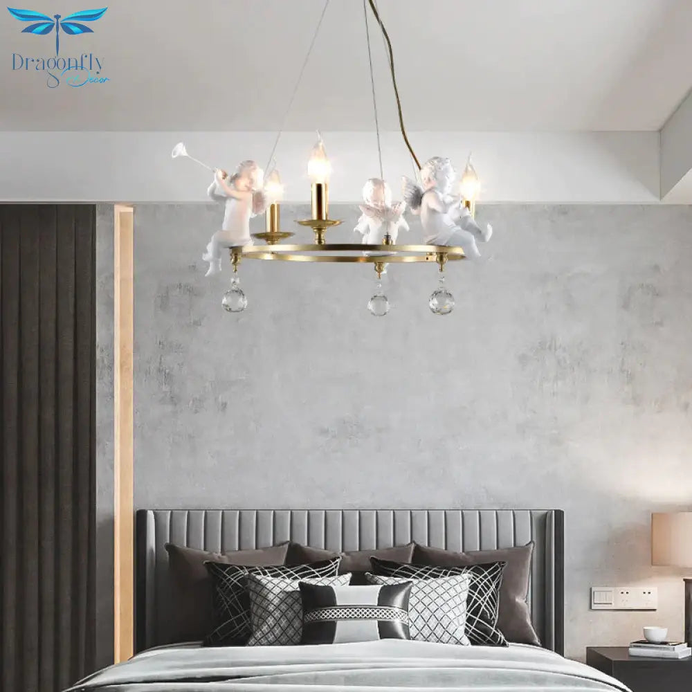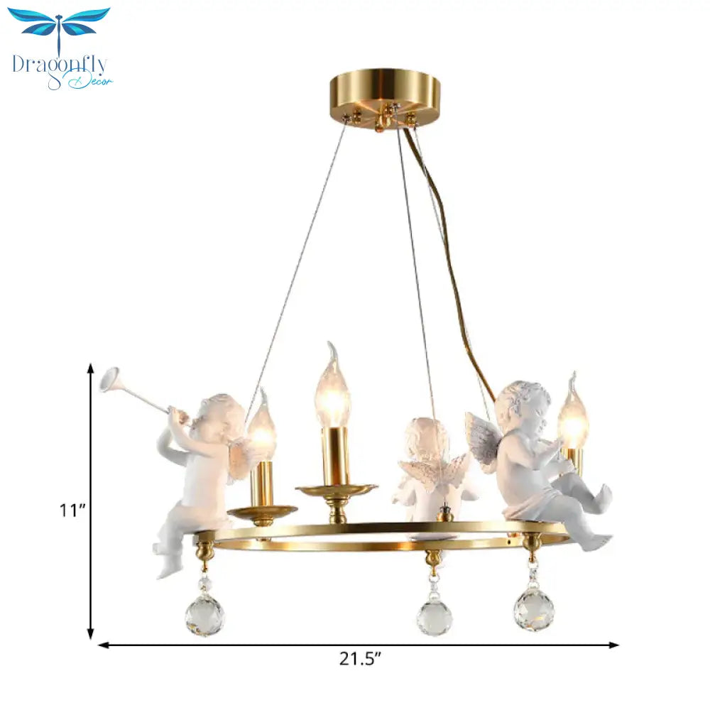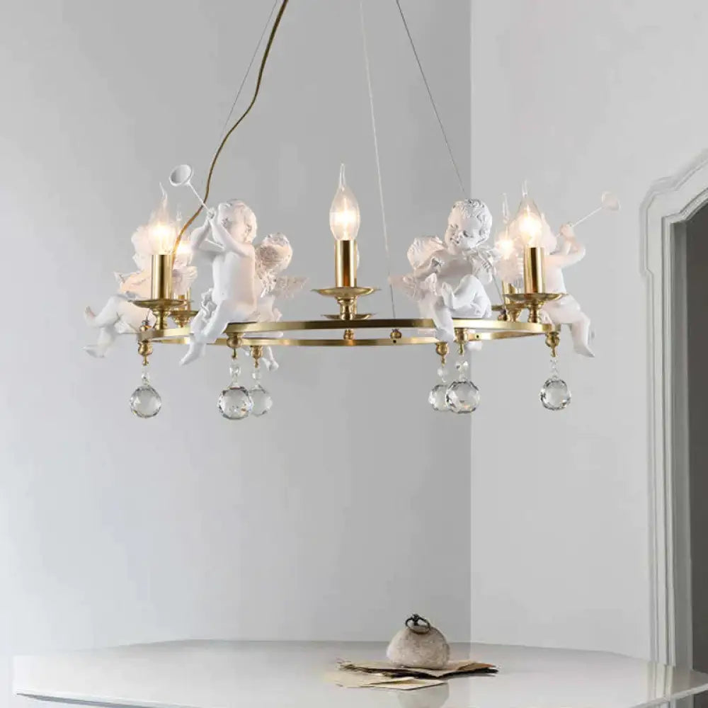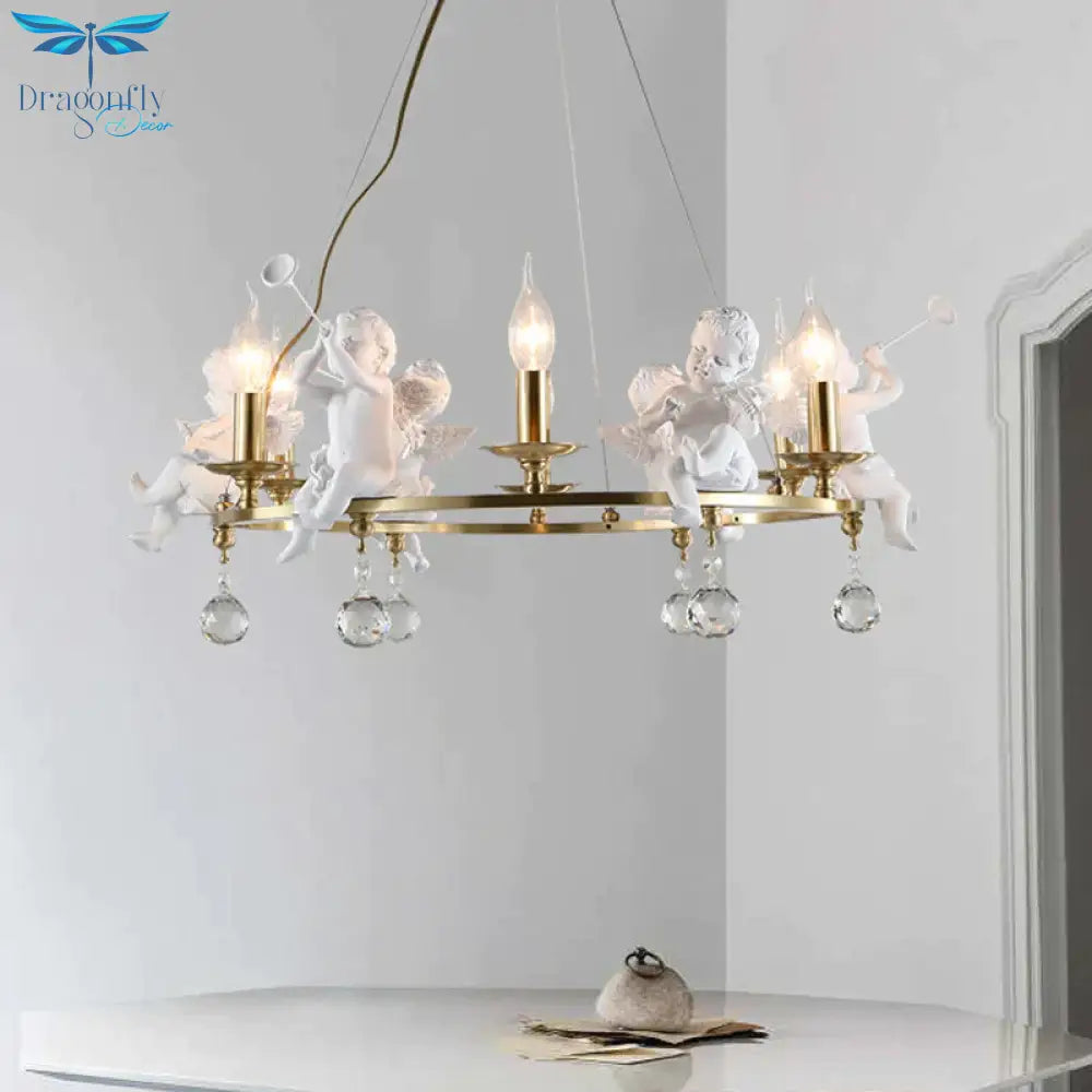 Traditional Candle Hanging Chandelier Metal 3/6/8 Bulbs Suspension Light in Brass with Angel