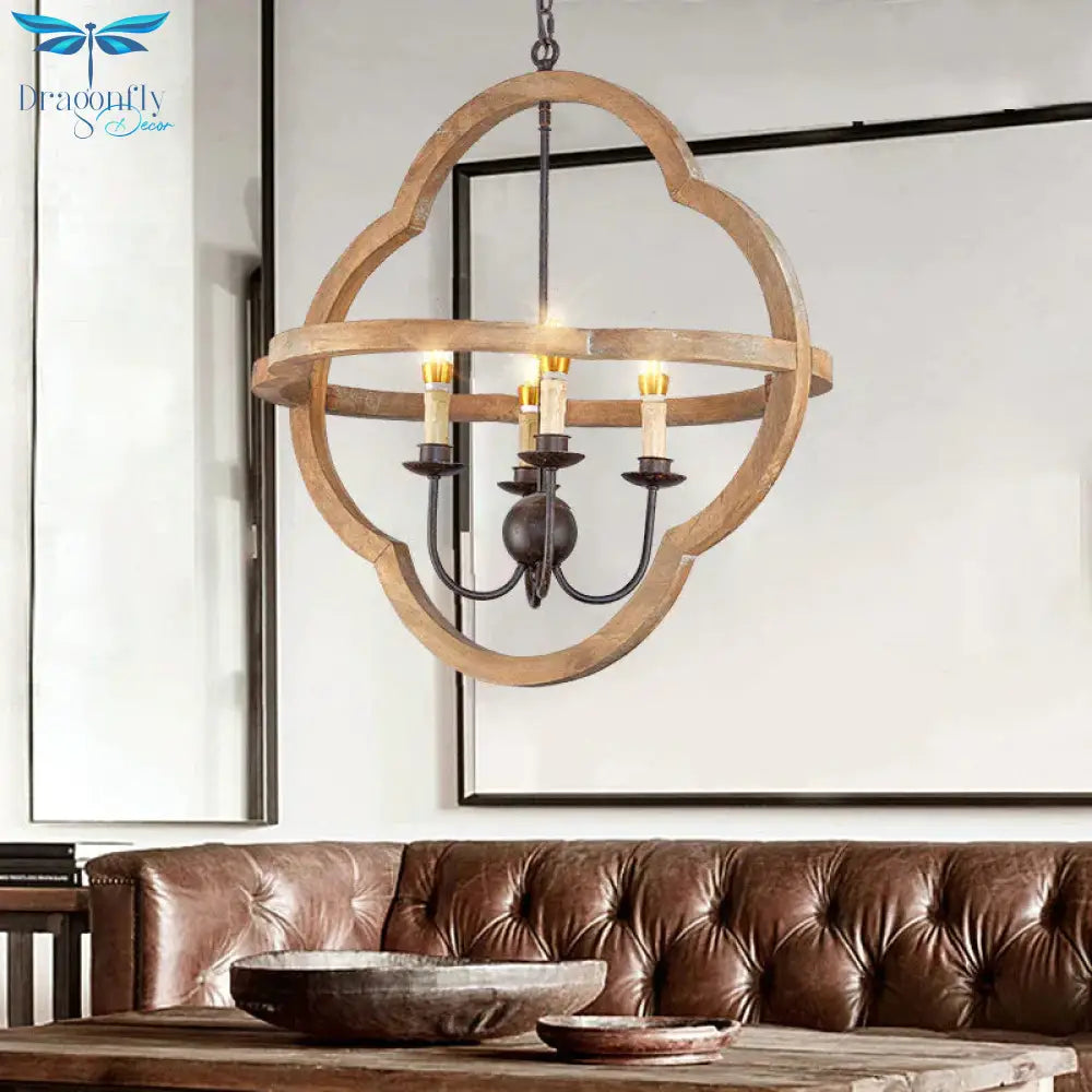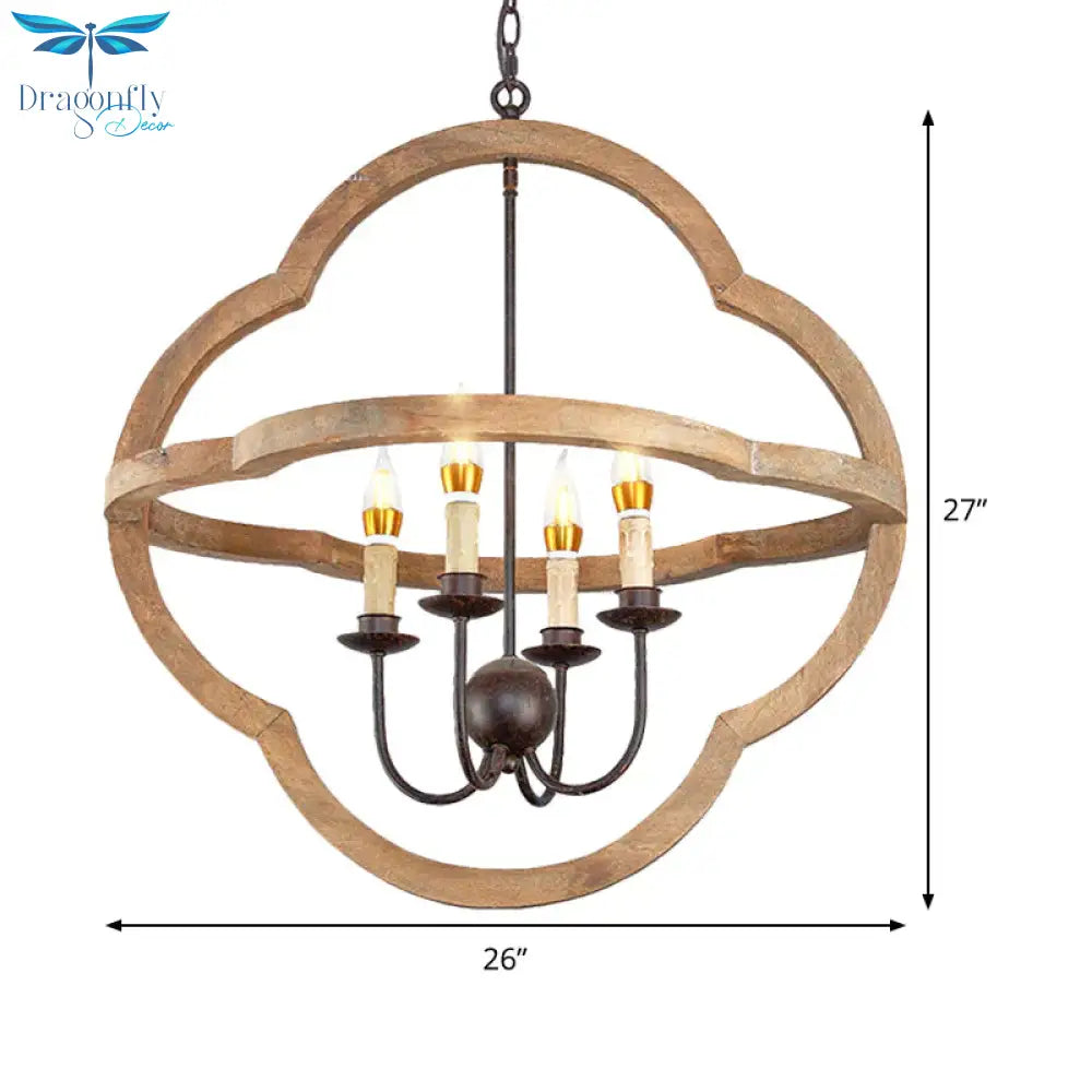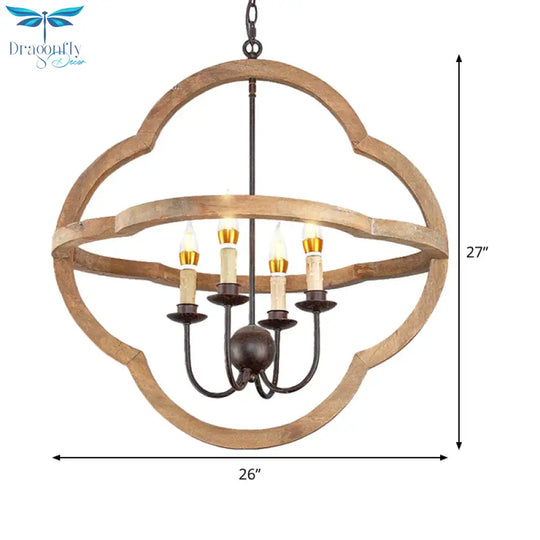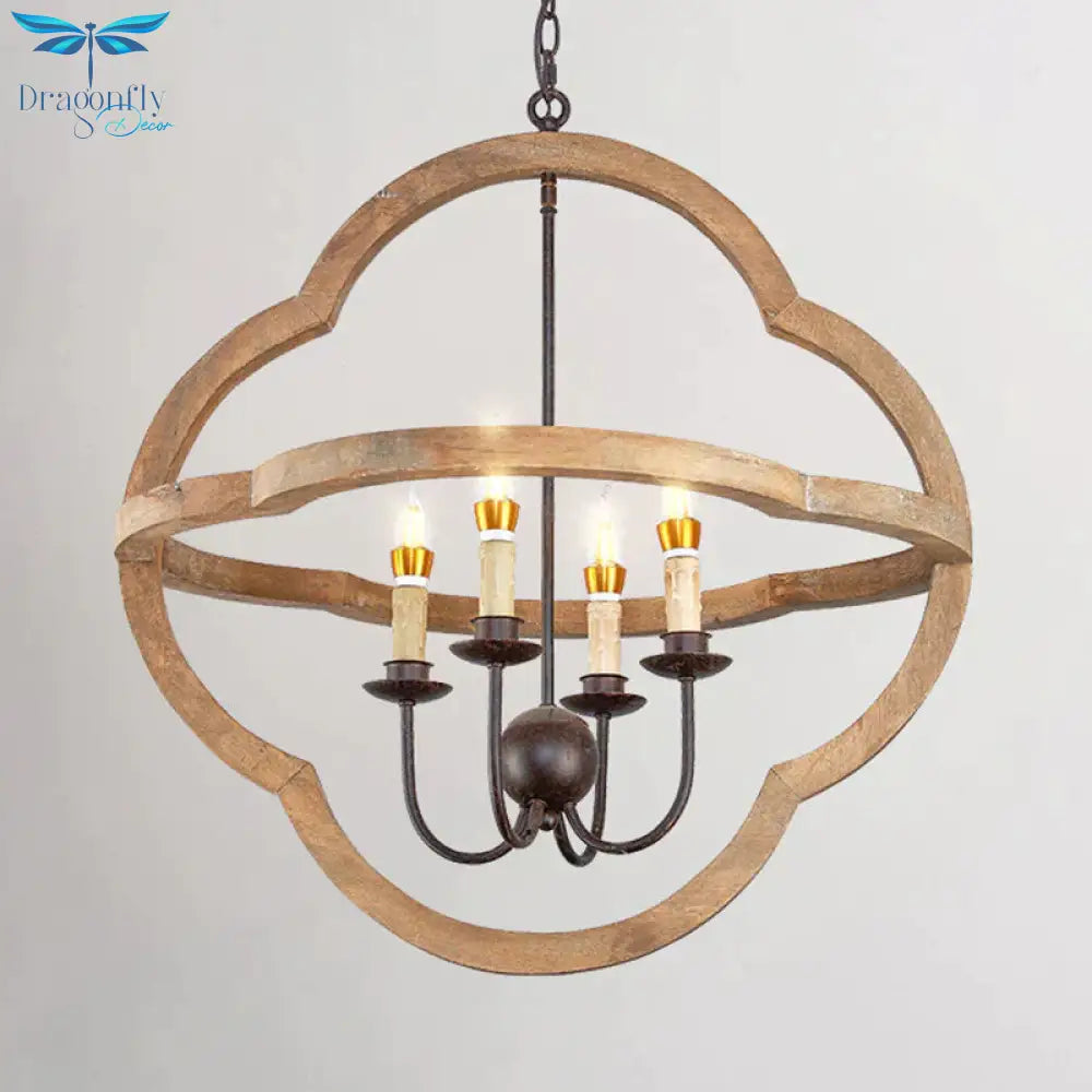Traditional Candle Hanging Chandelier Wood 4 Bulbs Suspension Light in