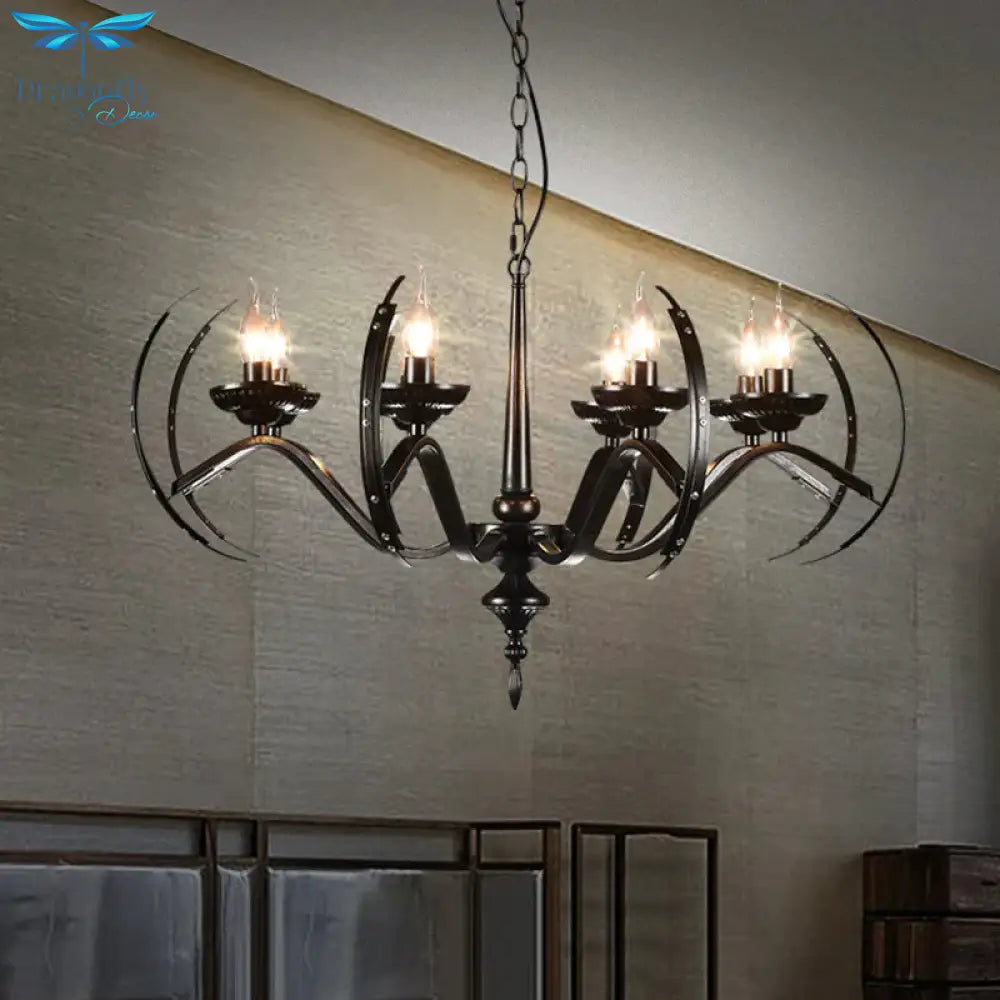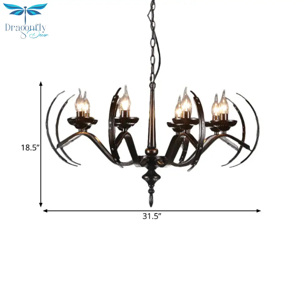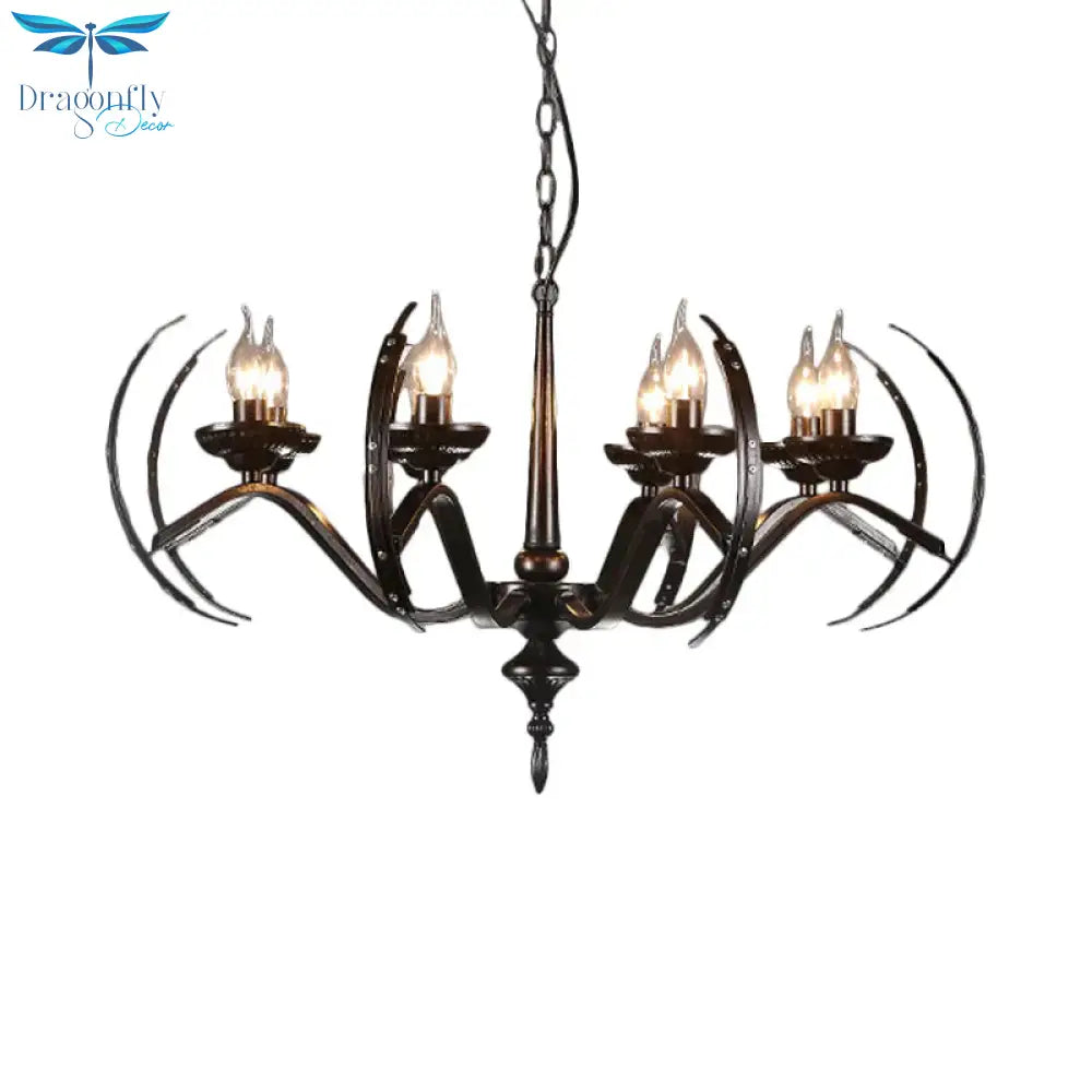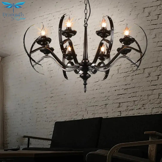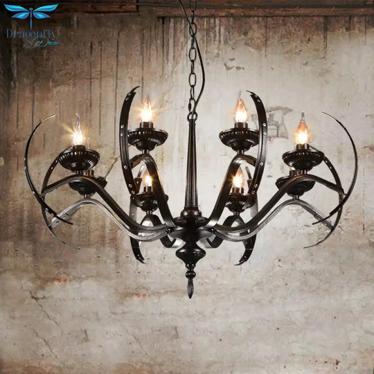 Traditional Candle Hanging Lamp 8 Bulbs Iron Chandelier Light Fixture with Curvy Arm in Black