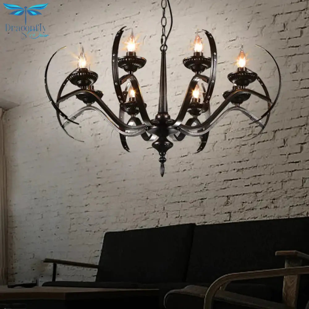Traditional Candle Hanging Lamp 8 Bulbs Iron Chandelier Light Fixture