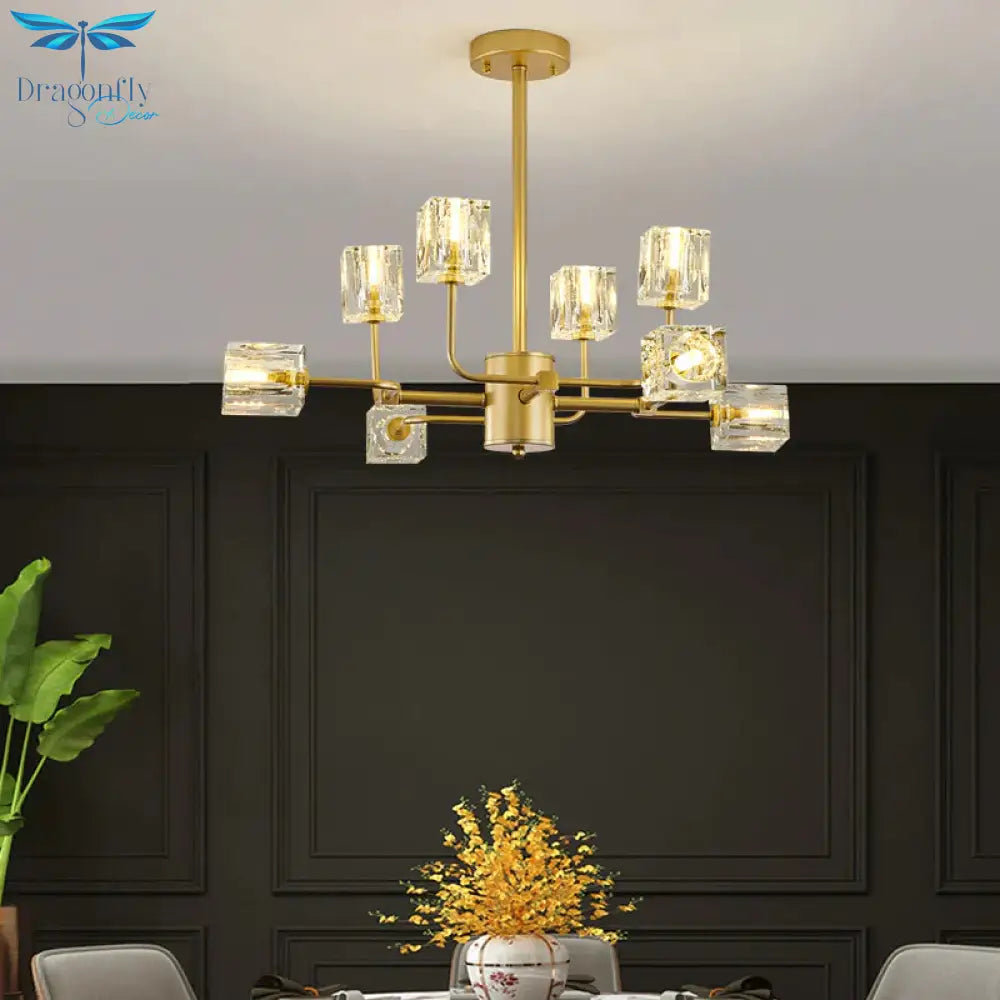 Traditional Cube Hanging Pendant 8 Heads Clear Crystal Glass Chandelie
