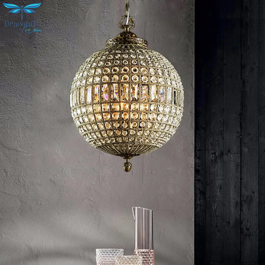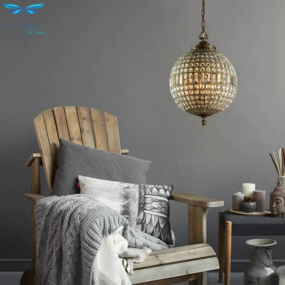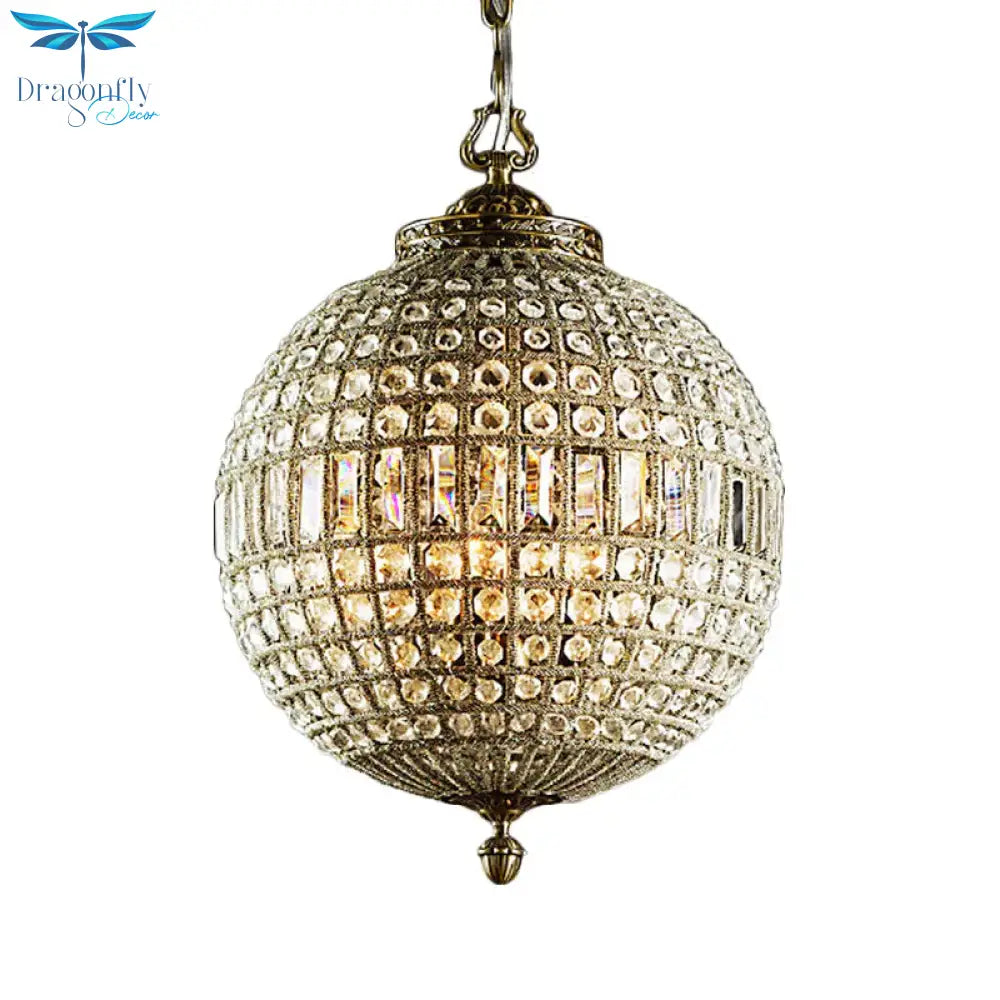 Traditional Orb Hanging Lamp 3 Bulbs Crystal Chandelier Light Fixture In Brass For Living Room