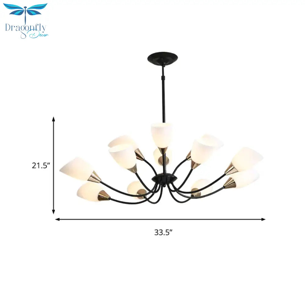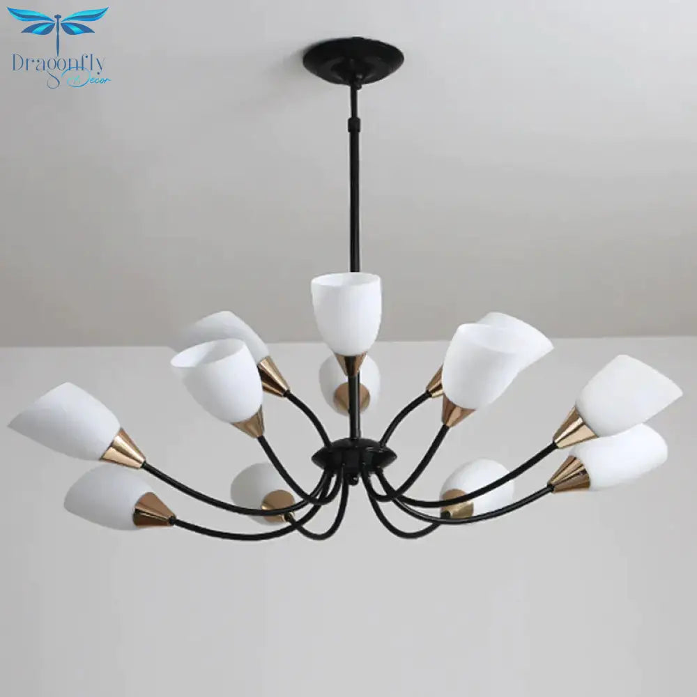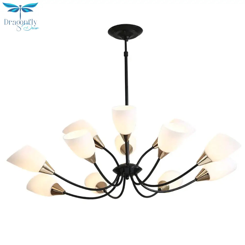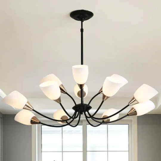 Traditional Oval Frosted 12 Lights Ceiling Light Glass Hanging Chandelier in Black for Living Room