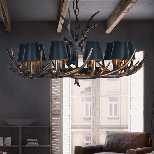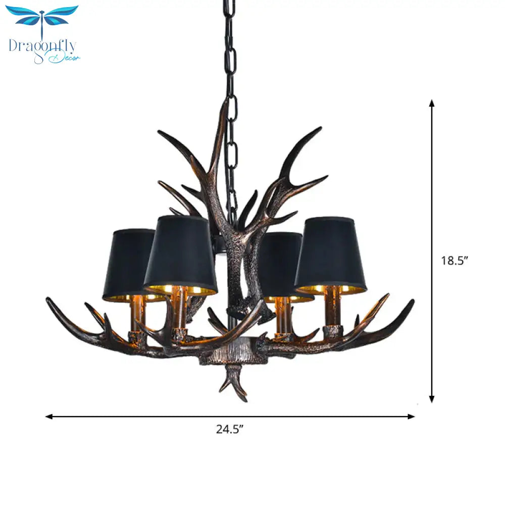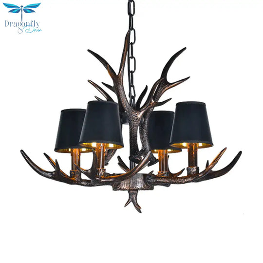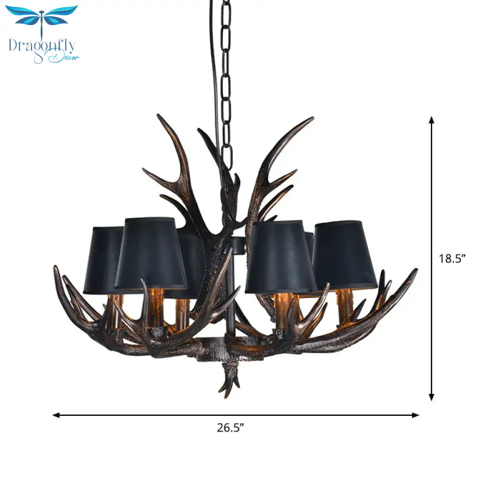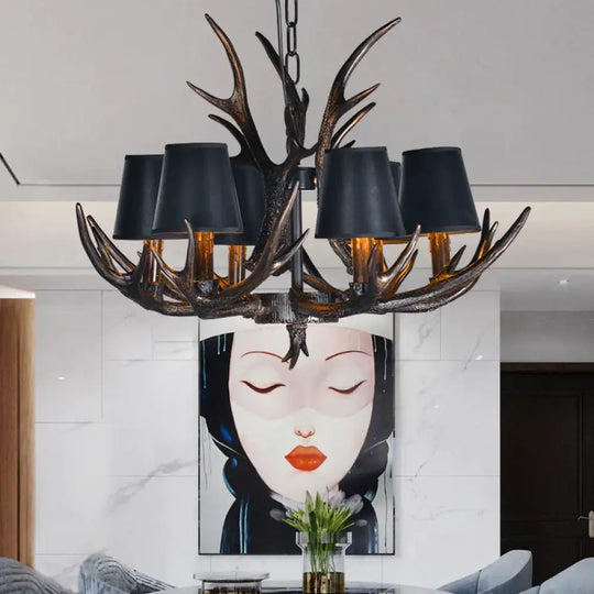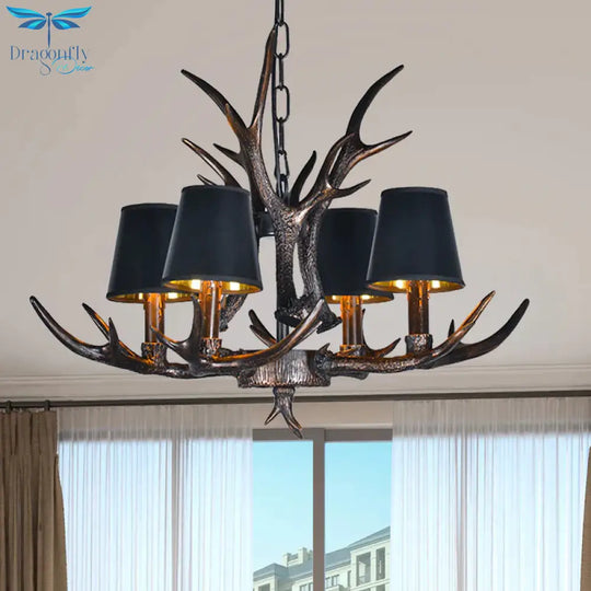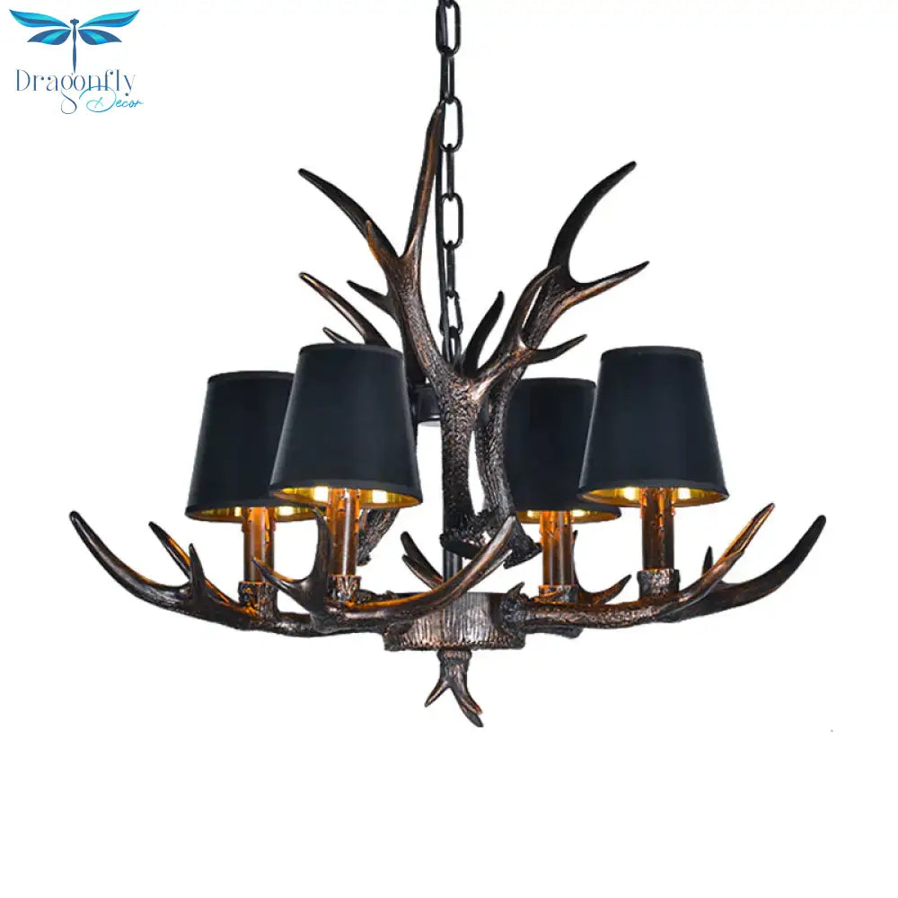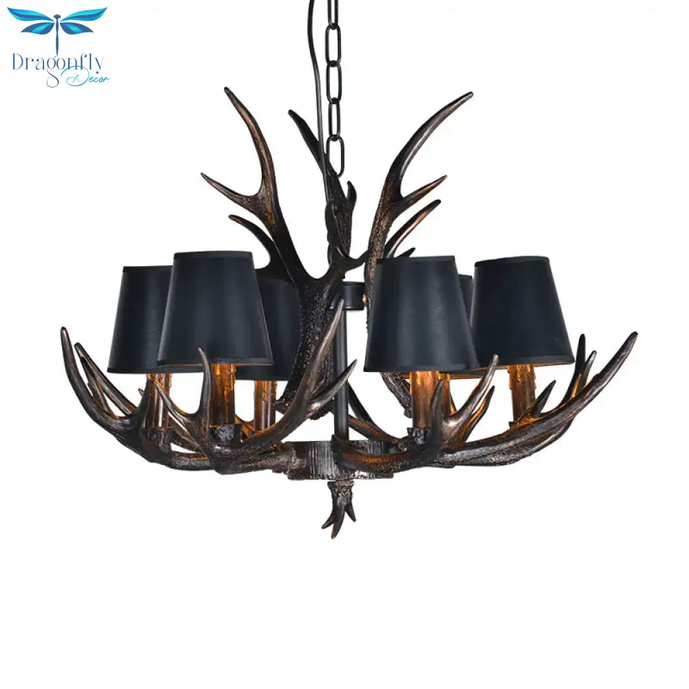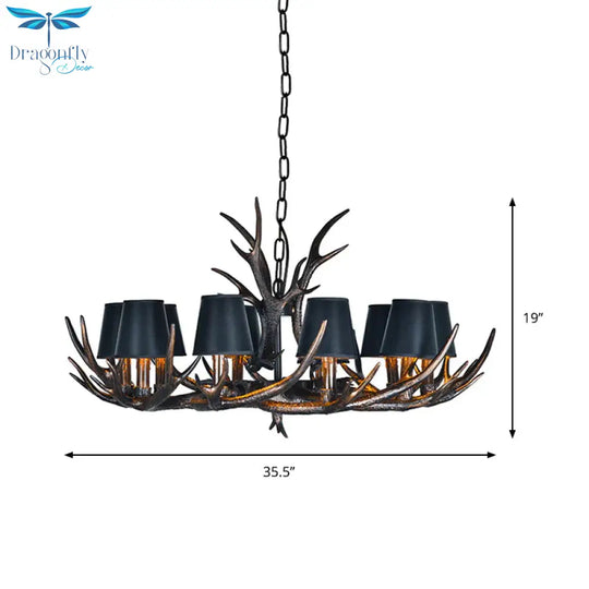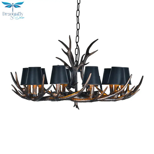 Traditional Tapered Shaped Hanging Lamp 4/6/10 Bulbs Resin Chandelier Light Fixture in Black for Restaurant