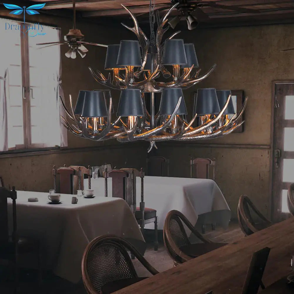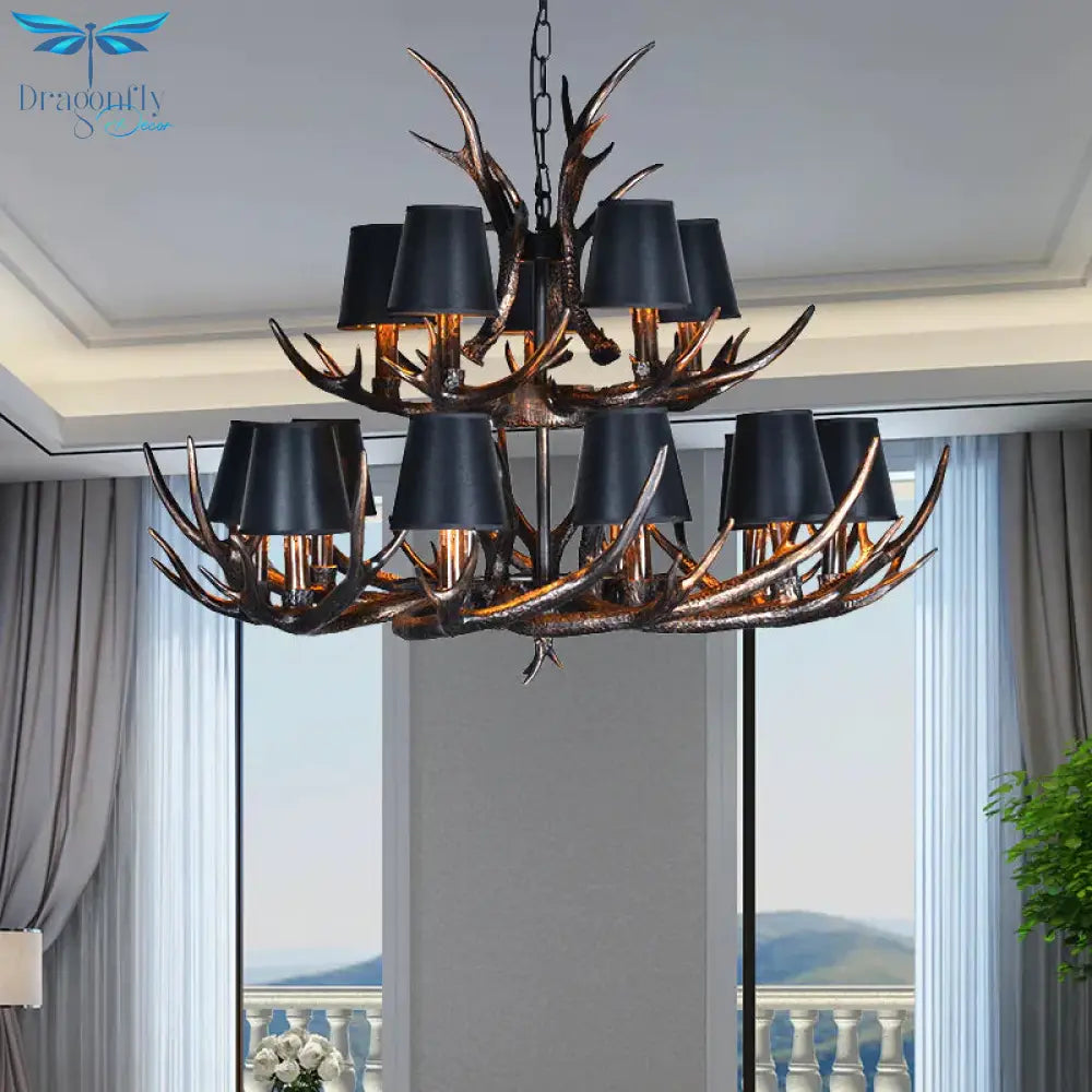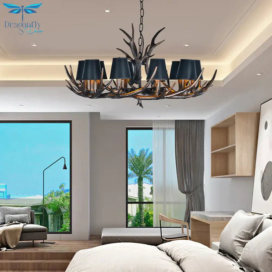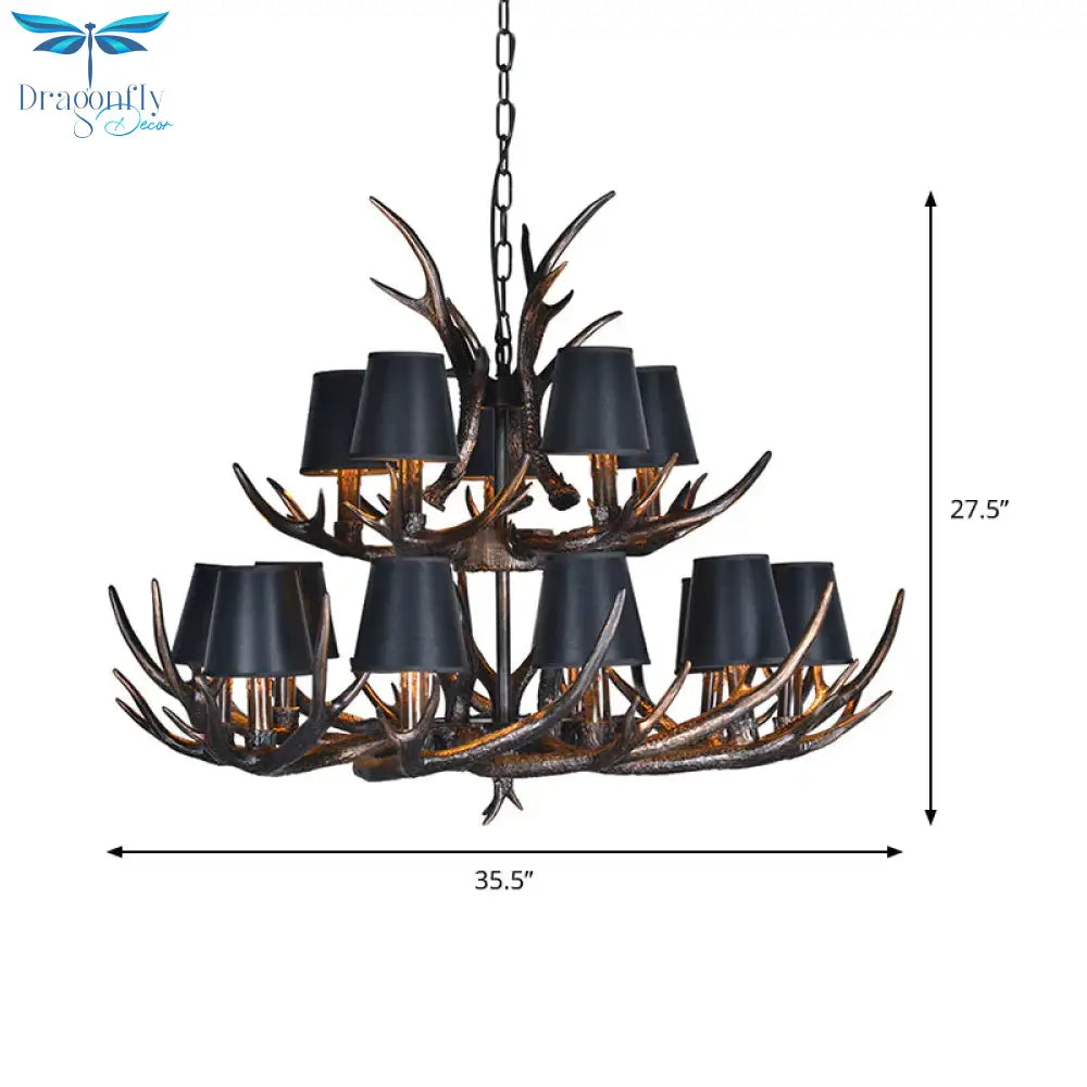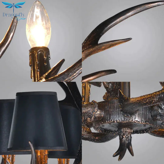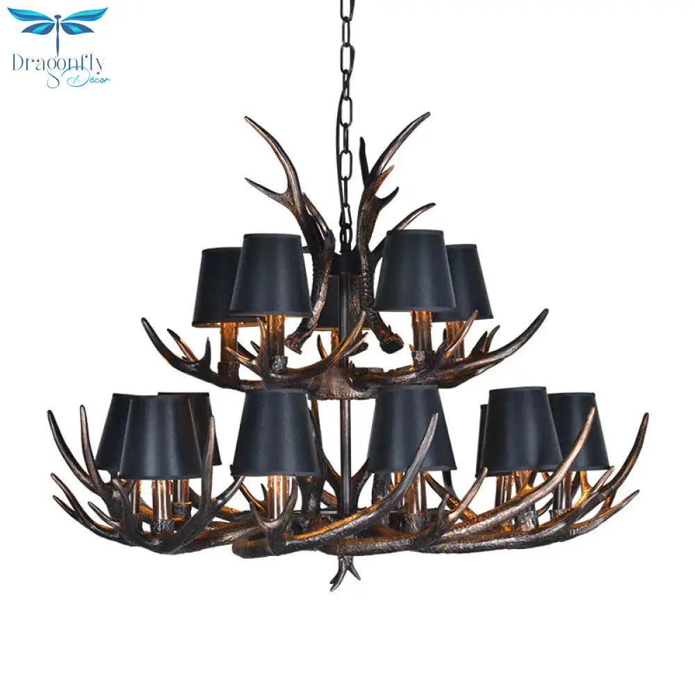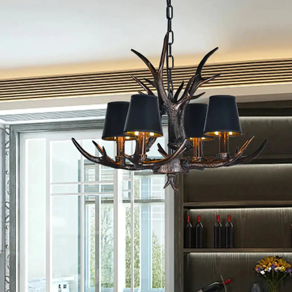 Traditional Tapered Shaped Hanging Lamp 4/6/10 Bulbs Resin Chandelier Light Fixture in Black for Restaurant