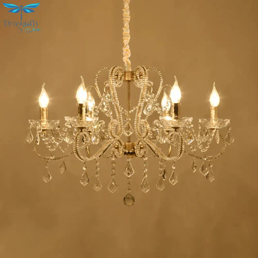 Traditionalism Candelabra Chandelier 6-Bulb Clear Crystal Hanging Ligh