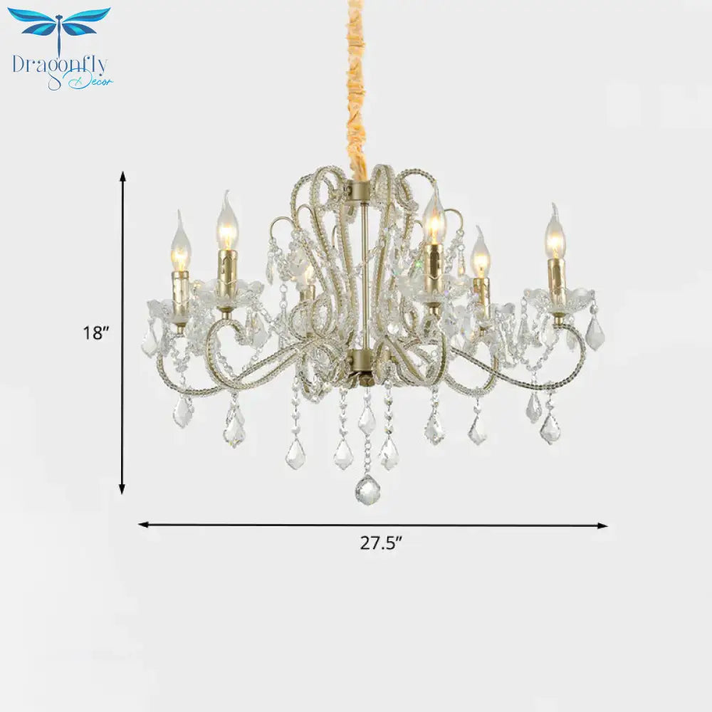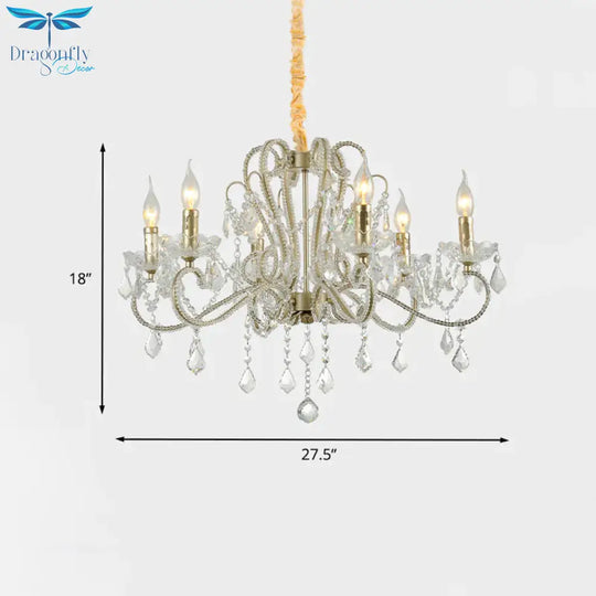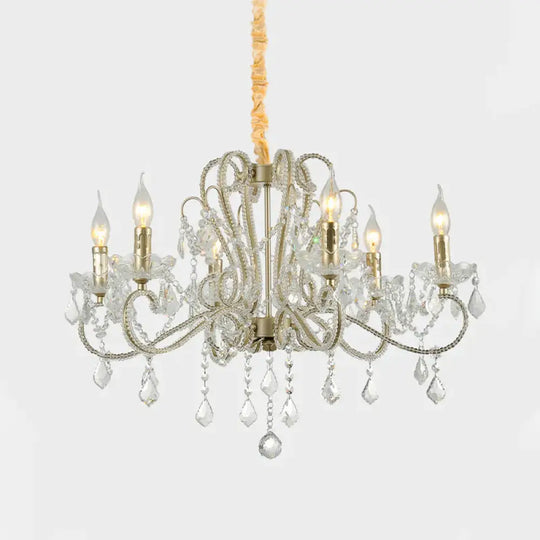 Traditionalism Candelabra Chandelier 6-Bulb Clear Crystal Hanging Light Fixture with Metal Scrolled Arm