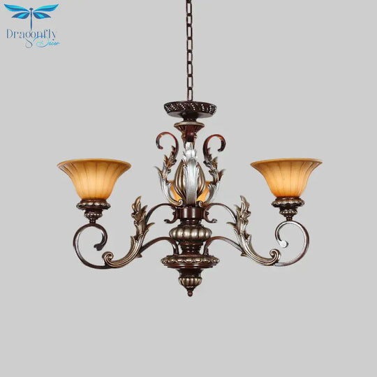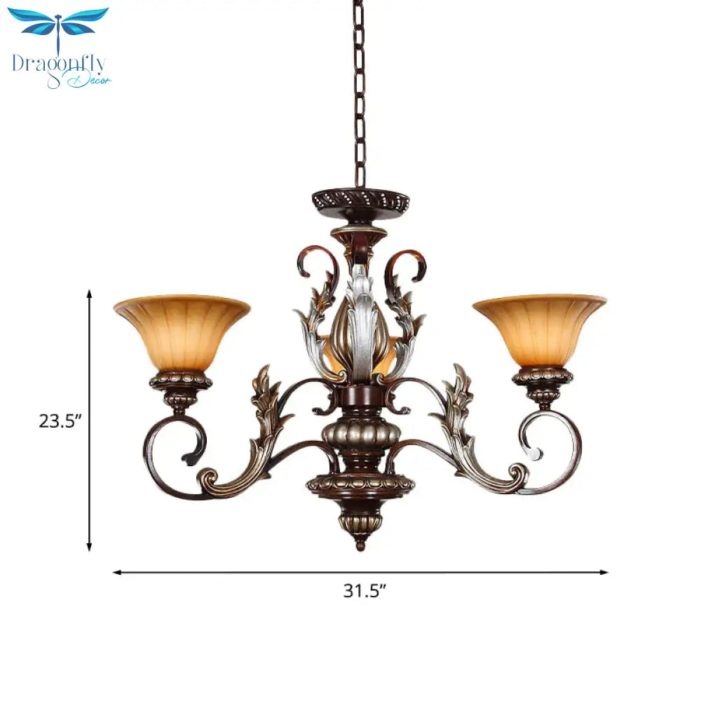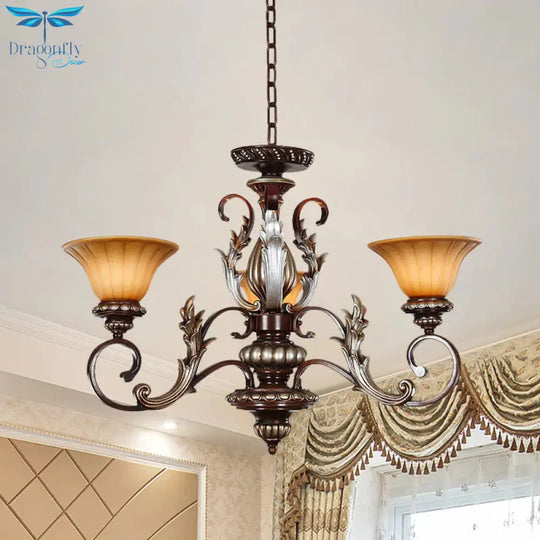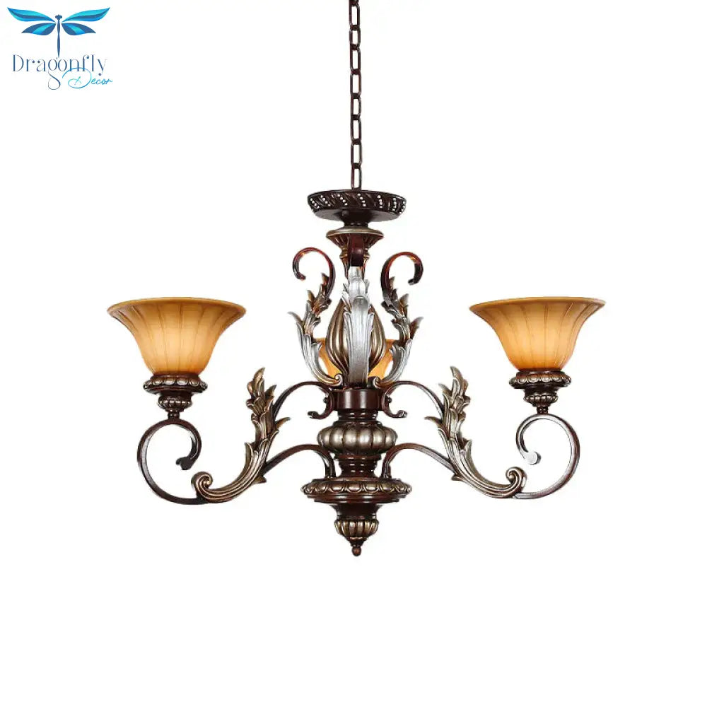 Traditionalist Bell Pendant Light 3 Lights Amber Glass Chandelier Lamp