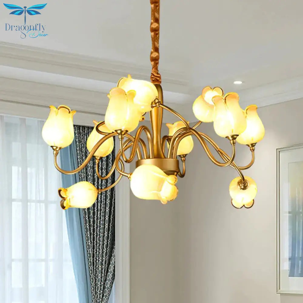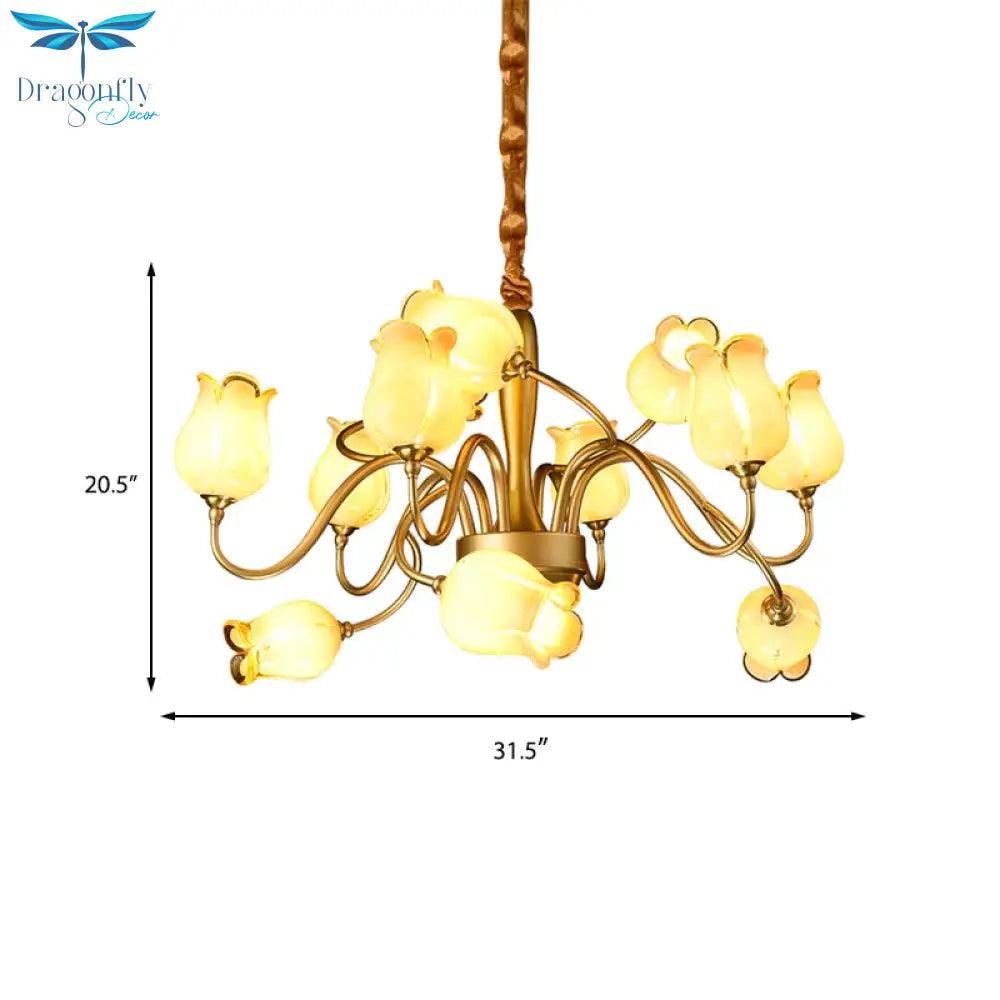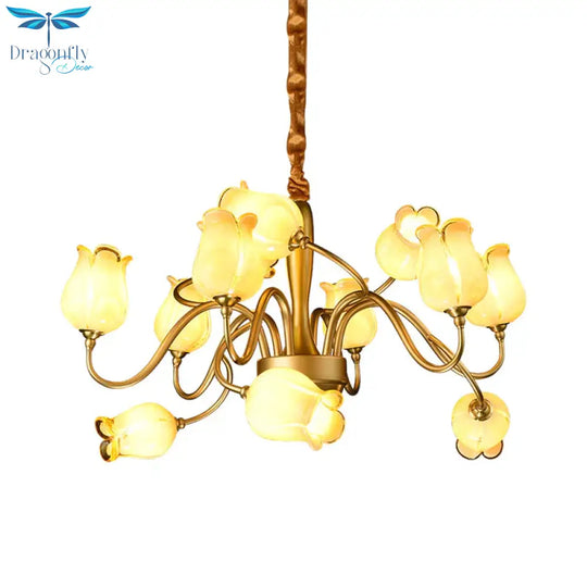 Tulip Bedroom Ceiling Chandelier American Garden Metal 12 Heads Gold L