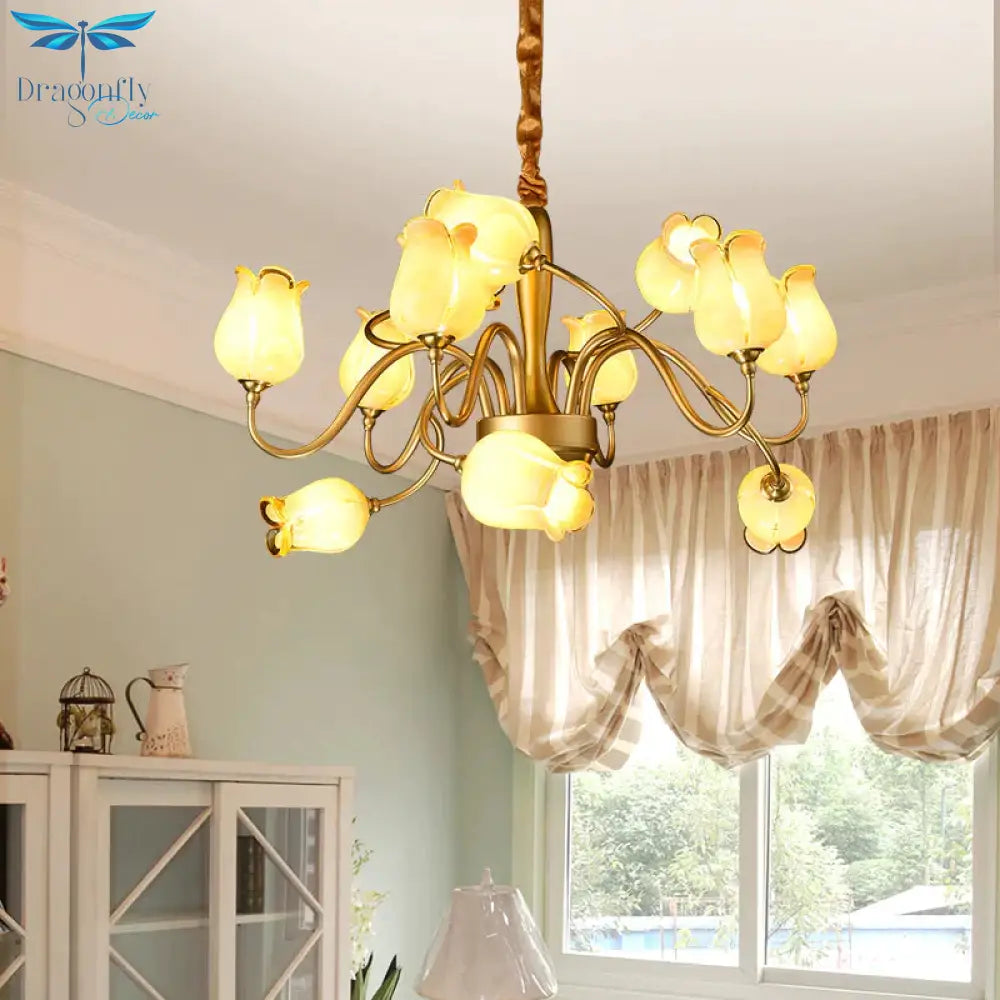 Tulip Bedroom Ceiling Chandelier American Garden Metal 12 Heads Gold LED Pendant Light Fixture