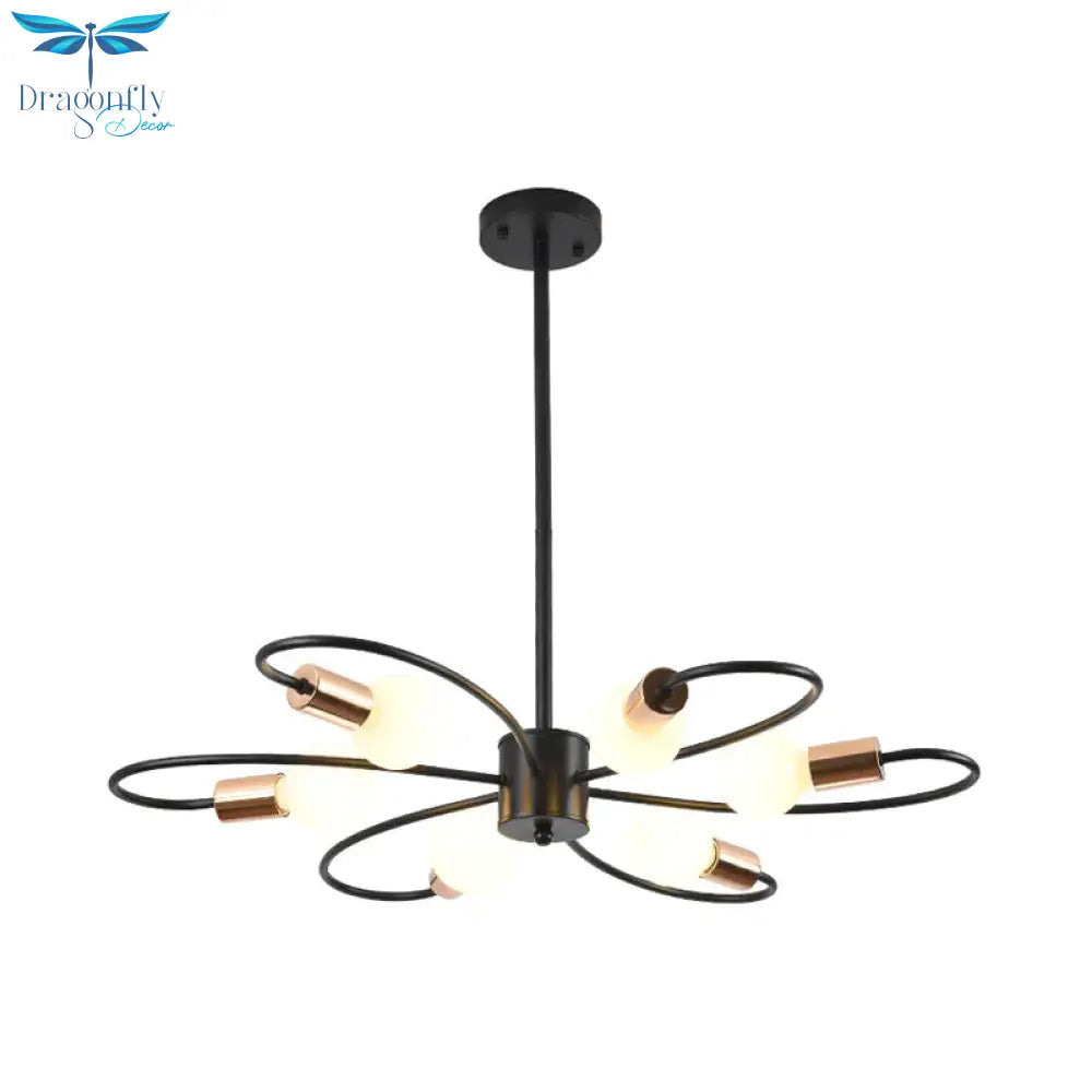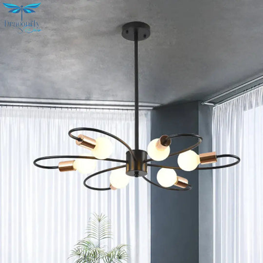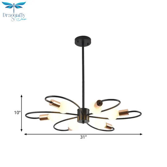 Six Bulbs with Twisted Arms: The chandelier boasts six bulbs elegantly arranged with twisted arms. This design adds a sense of movement and visual interest to the fixture, creating a captivating focal point in any room.