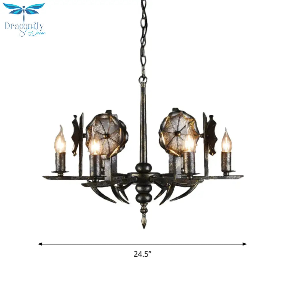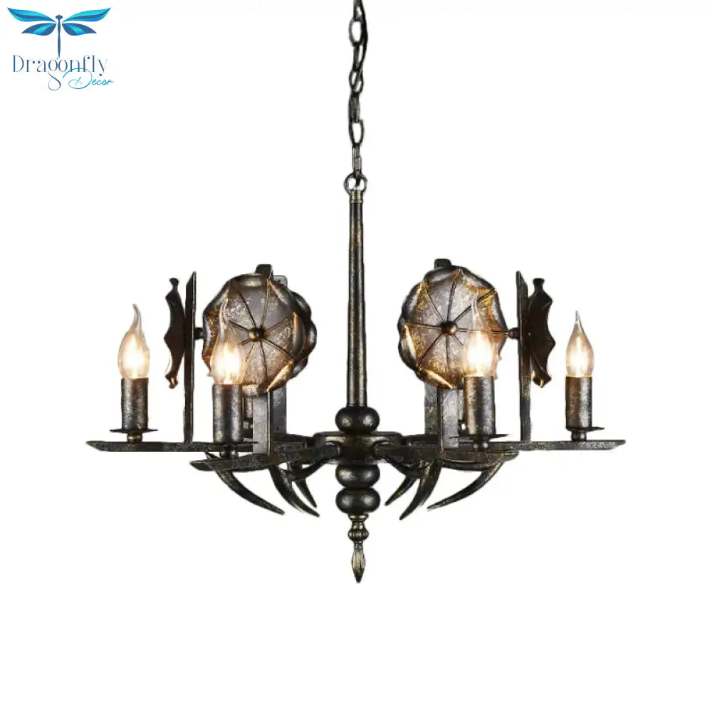 Vintage Aged Brass Chandelier Candle 6 Lights Metallic Pendant Lamp for Farmhouse Cottage
