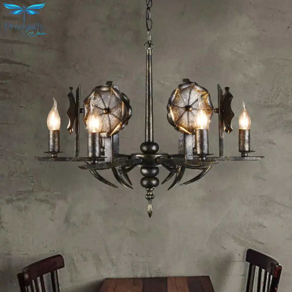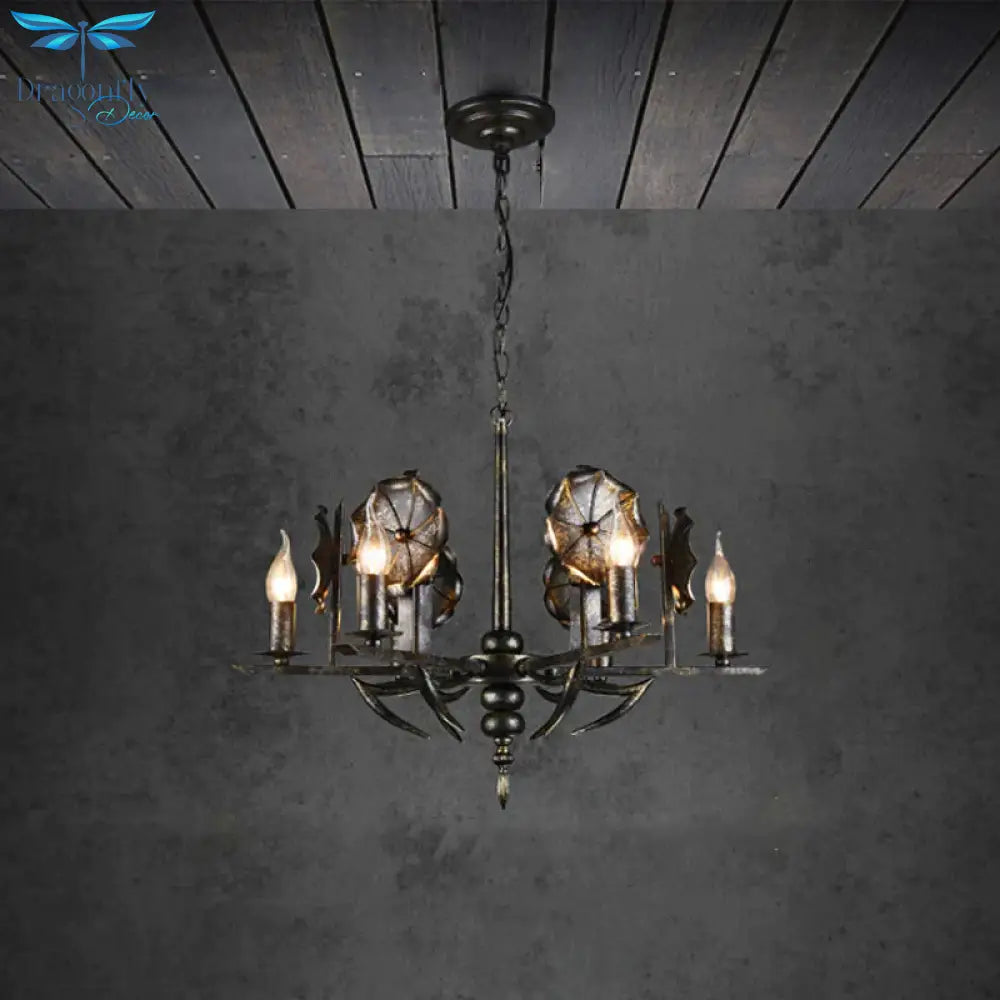 Vintage Aged Brass Chandelier Candle 6 Lights Metallic Pendant Lamp fo