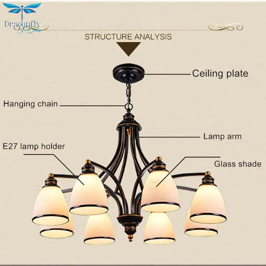 Features: Glass lampshade vintage metal chandelier loft lamp