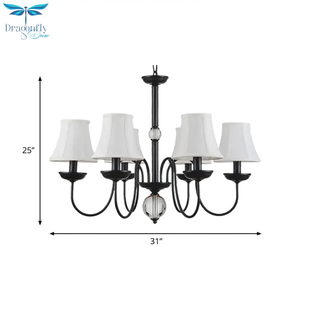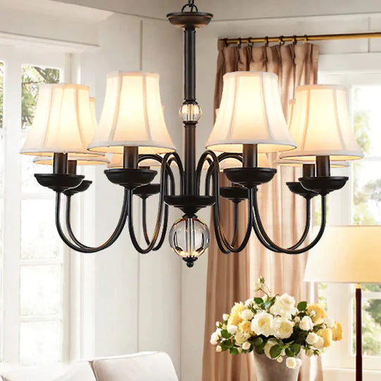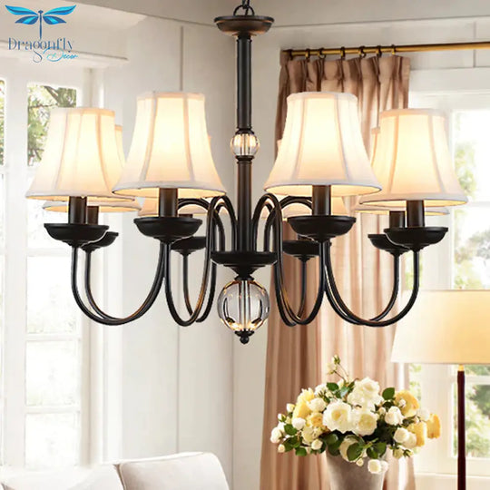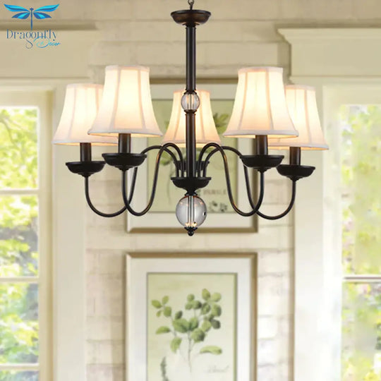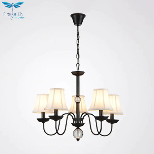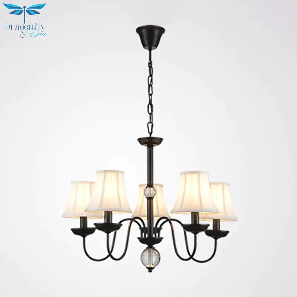 White 3/5/6 Lights Chandelier Light Fixture Traditional Fabric Tapered Pendant Lamp