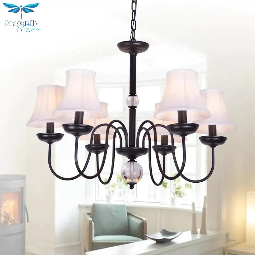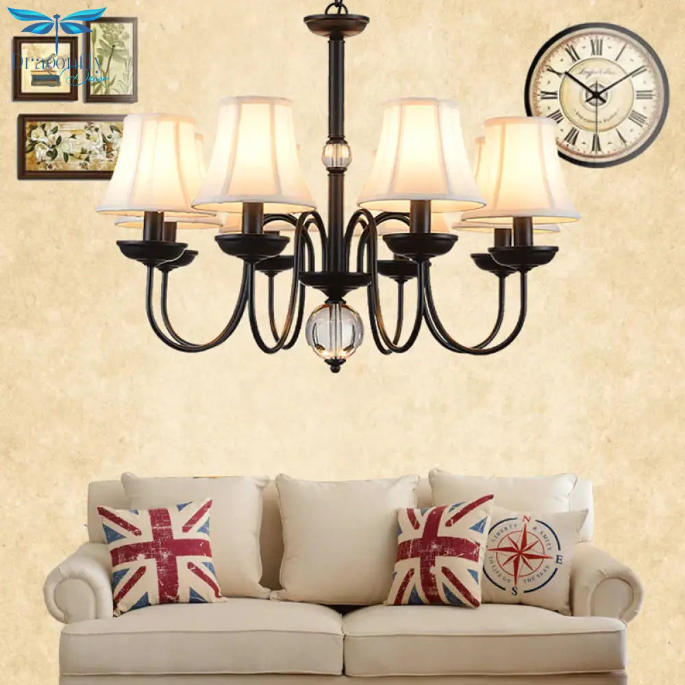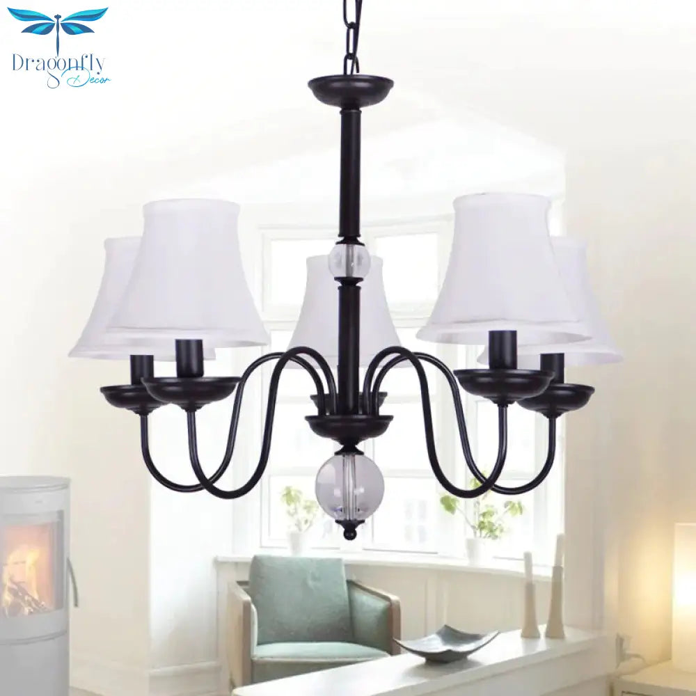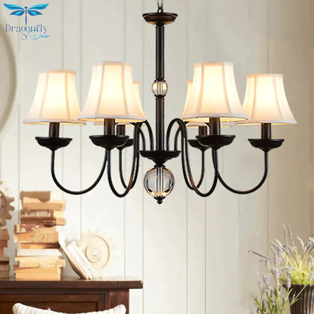 White 3/5/6 Lights Chandelier Light Fixture Traditional Fabric Tapered Pendant Lamp