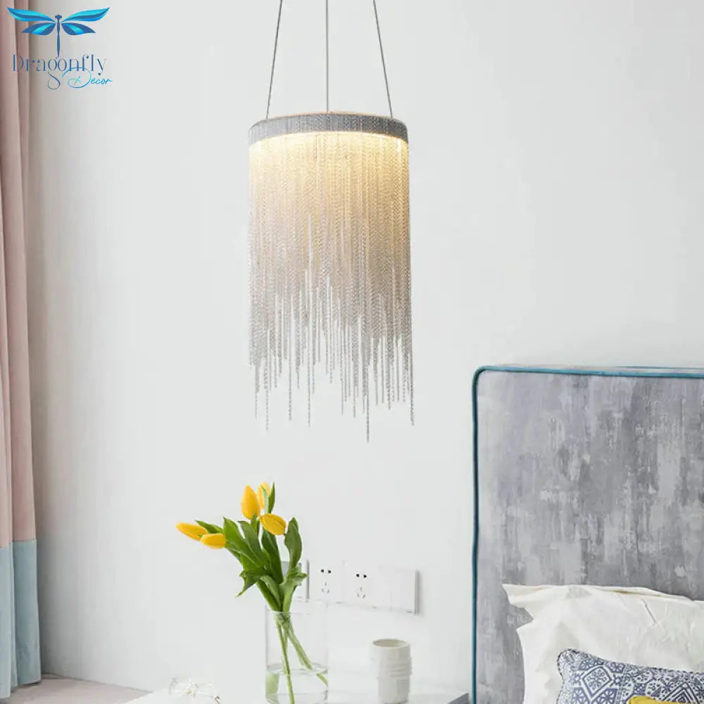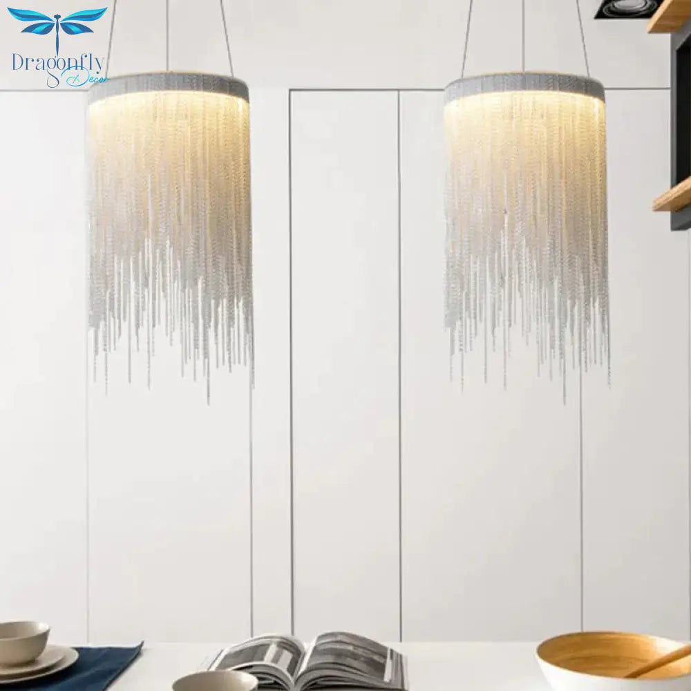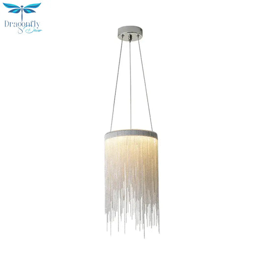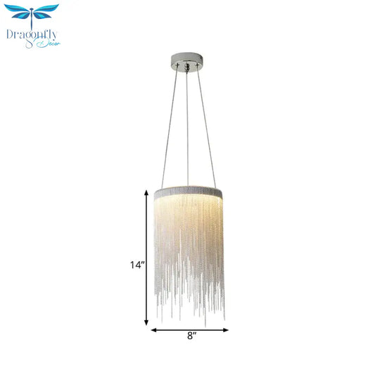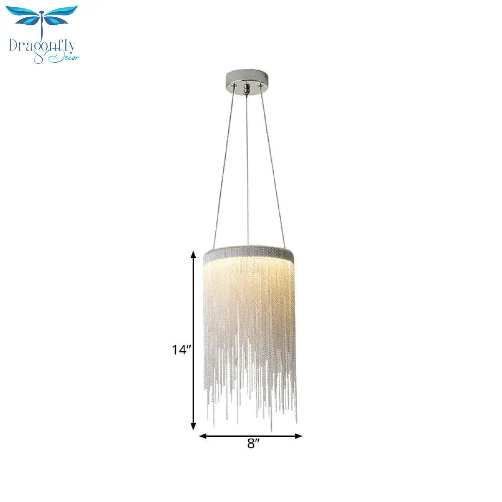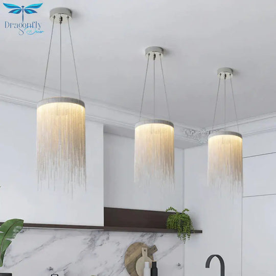 White Chain Chandelier Light Fixture Minimalism Metal 6 Lights Dining