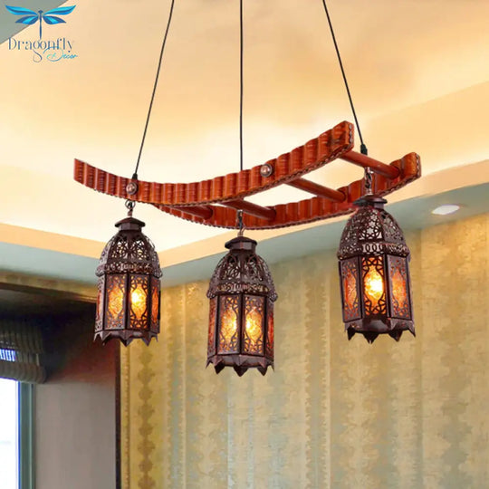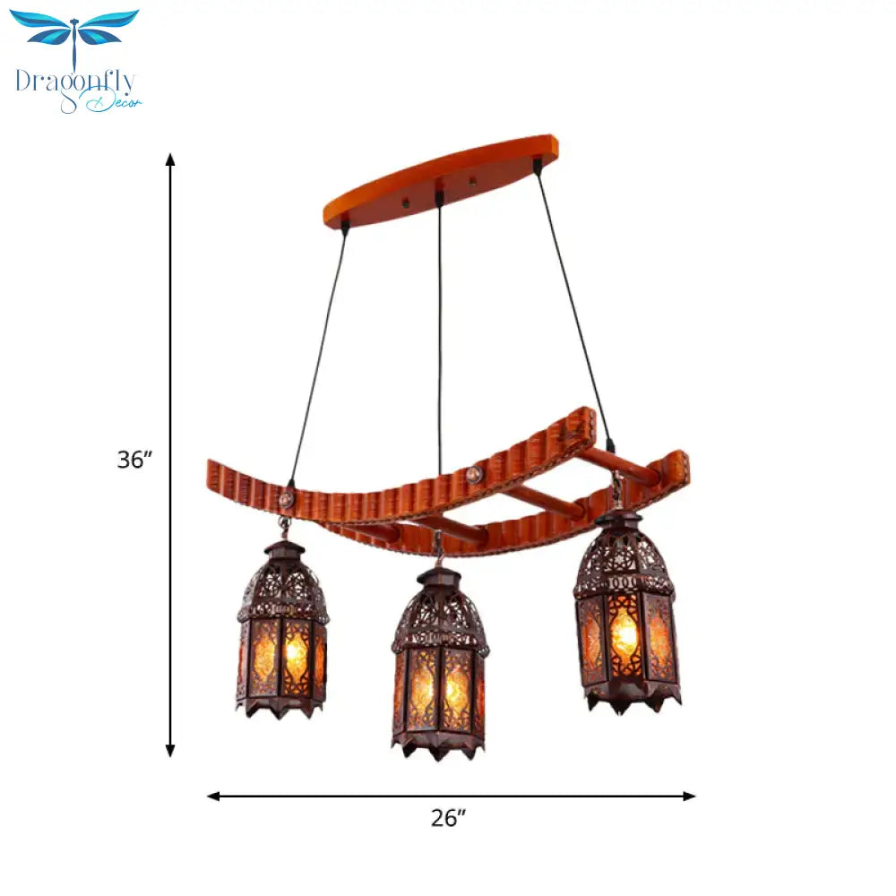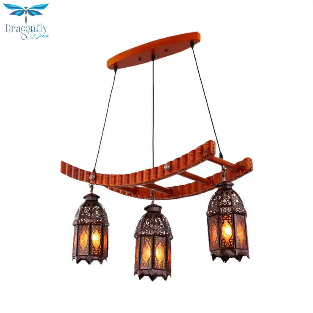 Wood Lantern Pendant Chandelier Arab Metal 3 Bulbs Dining Room Ceiling