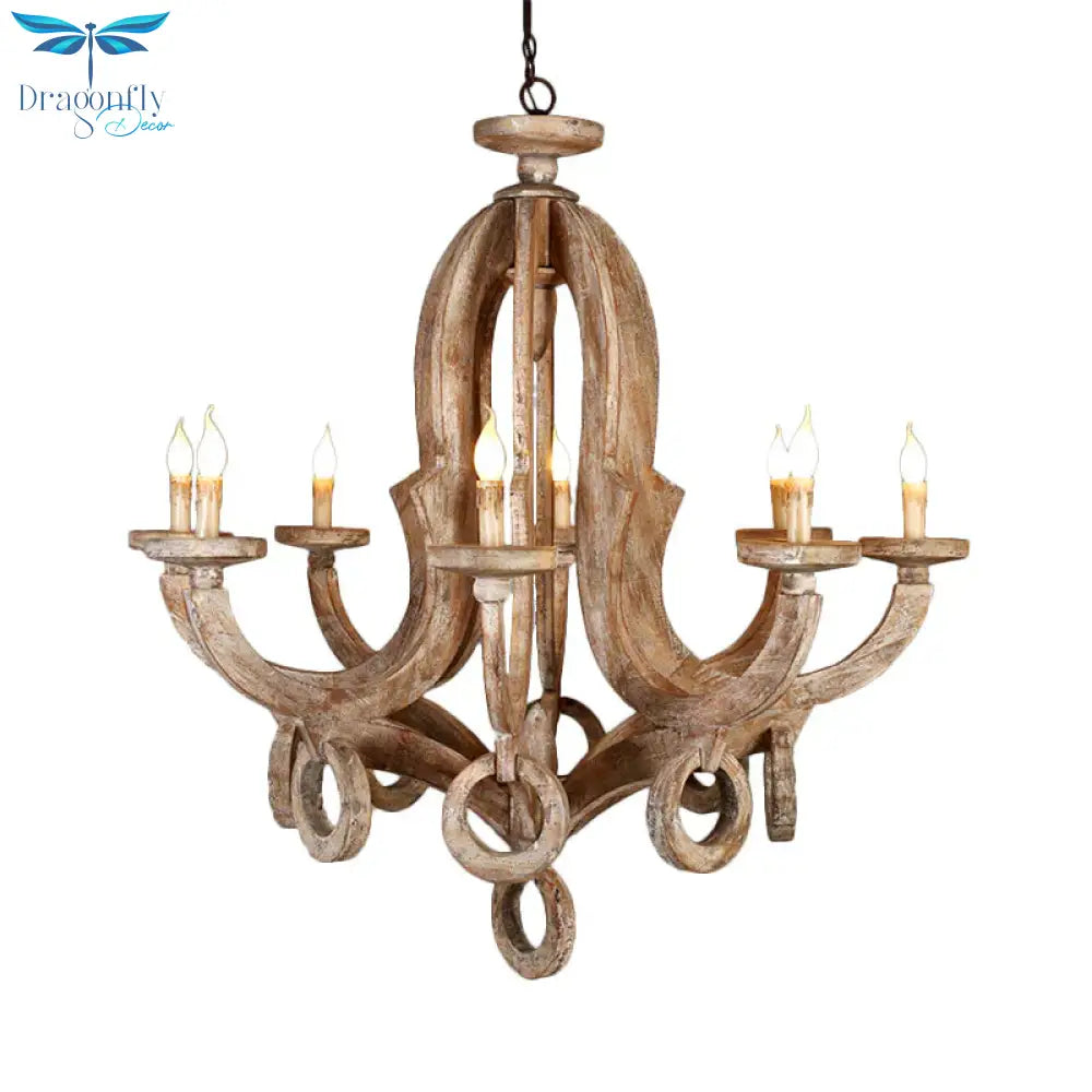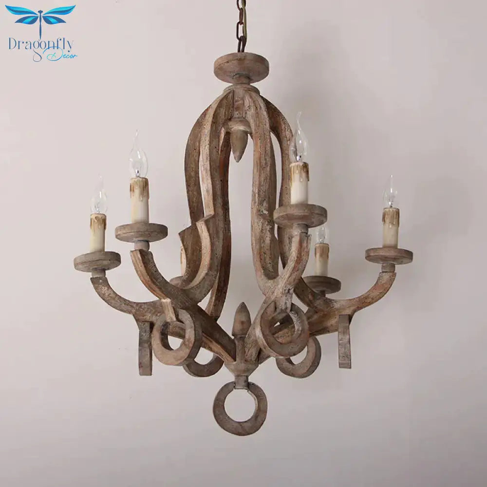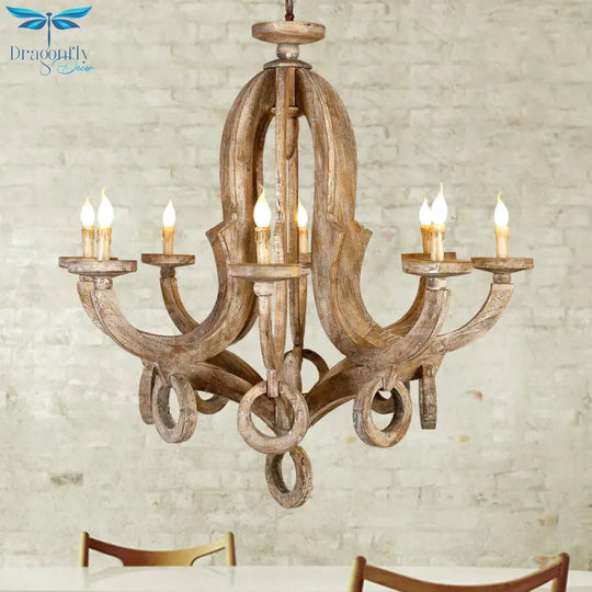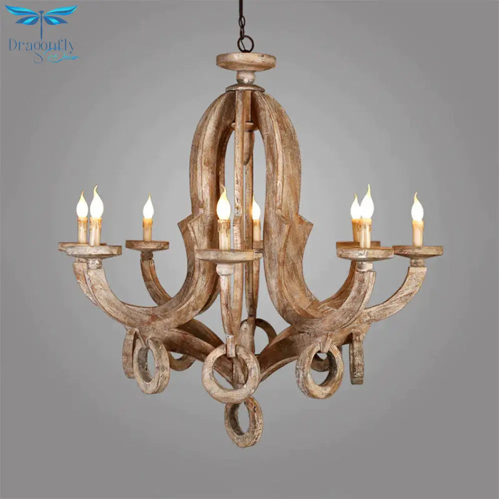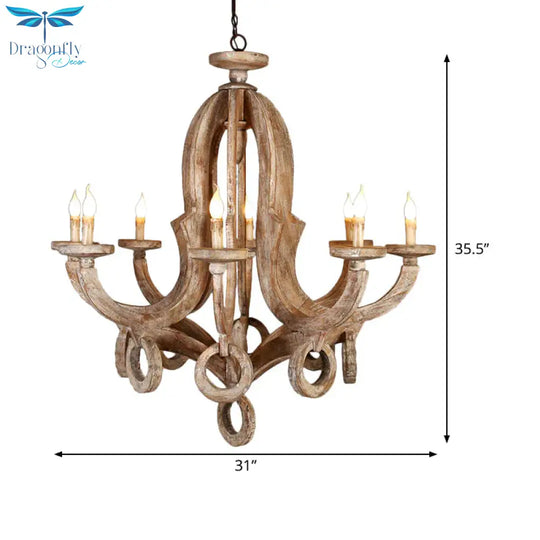 Wood Sputnik Chandelier Lamp Retro 6/8 Bulbs Brown Pendant Lighting Fi