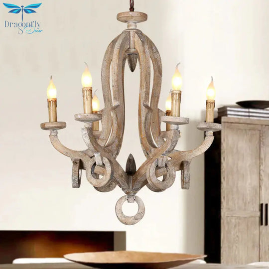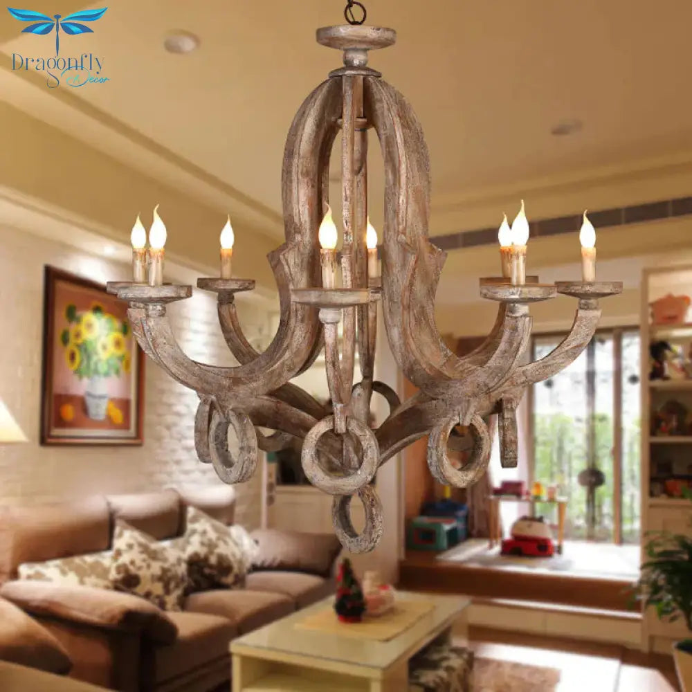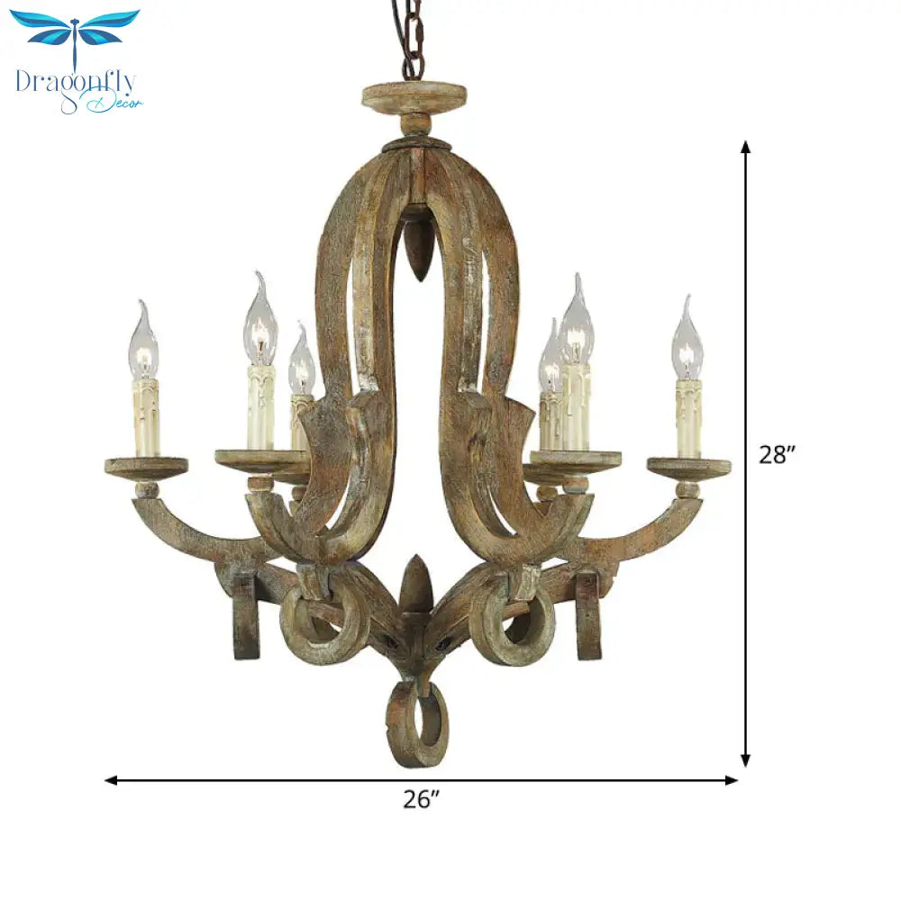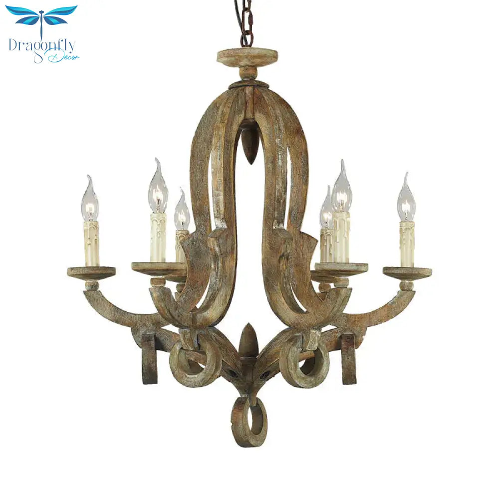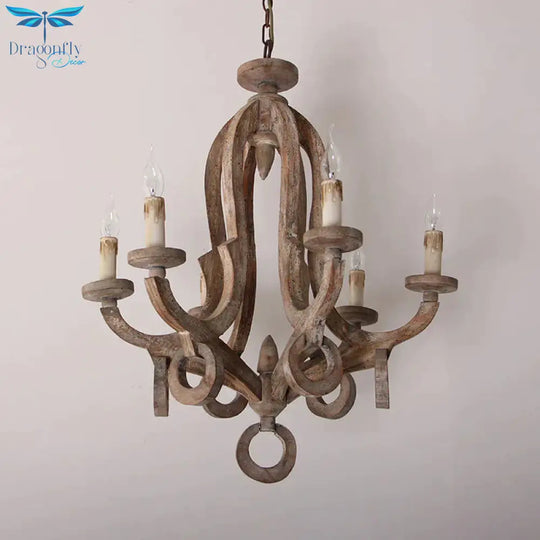 Wood Sputnik Chandelier Lamp Retro 6/8 Bulbs Brown Pendant Lighting Fi