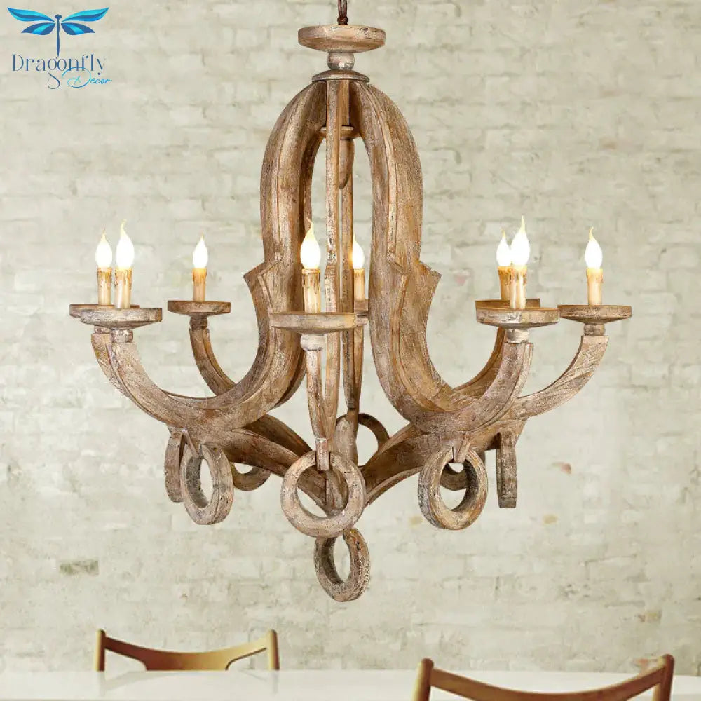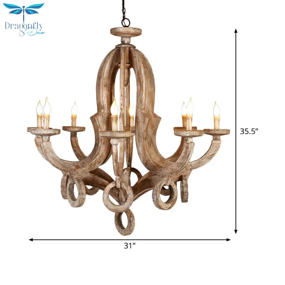 Wood Sputnik Chandelier Lamp Retro 6/8 Bulbs Brown Pendant Lighting Fixture with Adjustable Chain