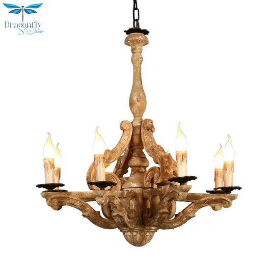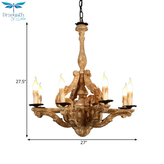 Wooden Candle Chandelier Lamp Rustic 8-Head Restaurant Pendant Ceiling